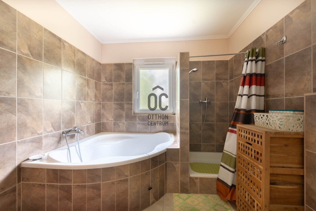 A házhoz tartozik egy kertrész, illetve egy 15 m²-es garázs, amely kényelmes parkolást biztosít, valamint praktikus tárolási lehetőséget is nyújt.