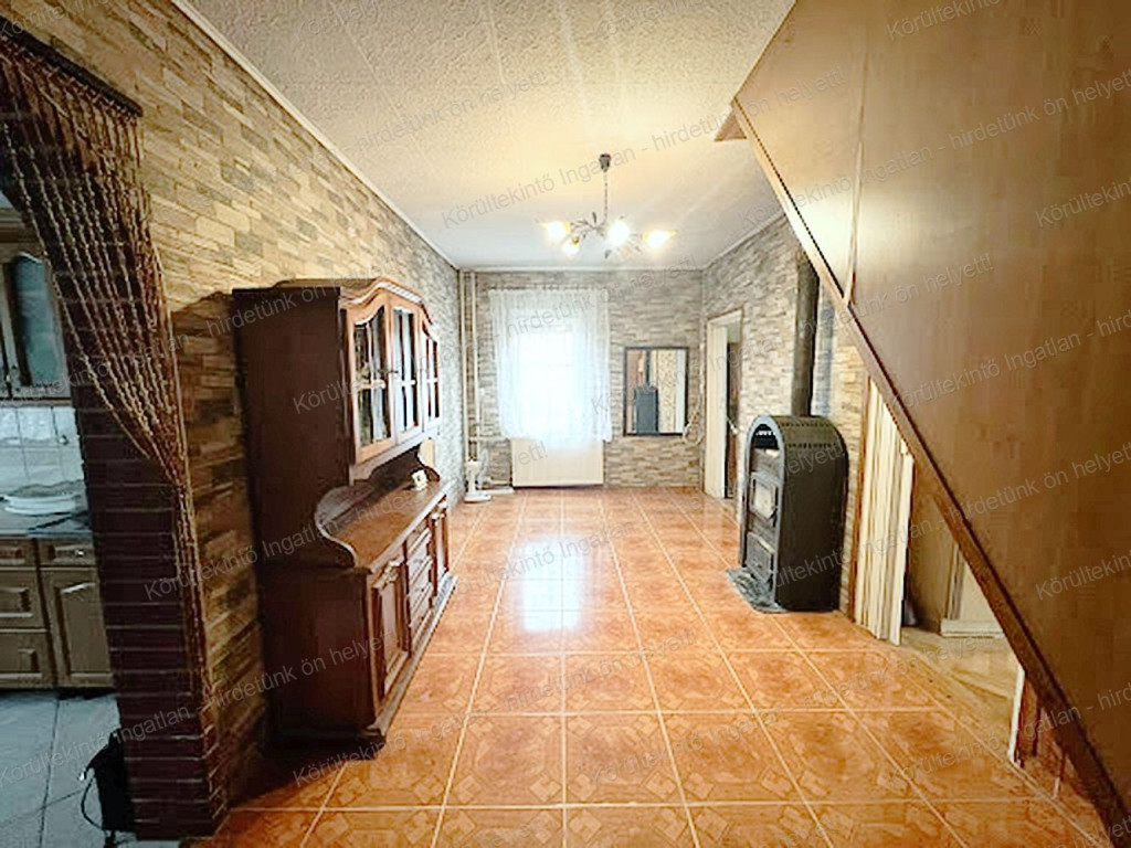 A felépítmény 1974-ben, téglából épült, jó állapotú, két szintes, 140 m2 hasznos alapterületű, összesen 5 szobás. Jelenleg két generációs házként funkcionál. Cseréptető fedi.