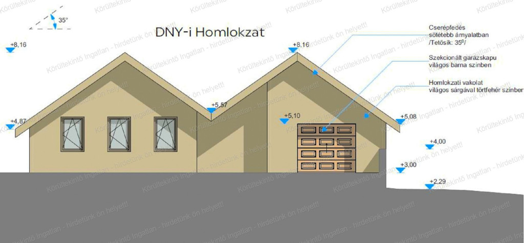A ház 154 nm hasznos lakóterületű, két szintes. Az utcafronti szint a felső szint, itt található a garázs, két háló, fürdő mosókonyha és gépészeti helyiség, míg a kertkapcsolatos alsó szinten az amerikai konyhás nappali, egy háló, fürdő, külön wc, kamra és az étkező.