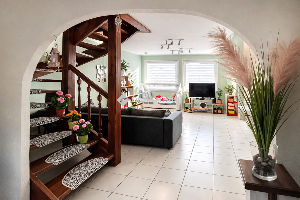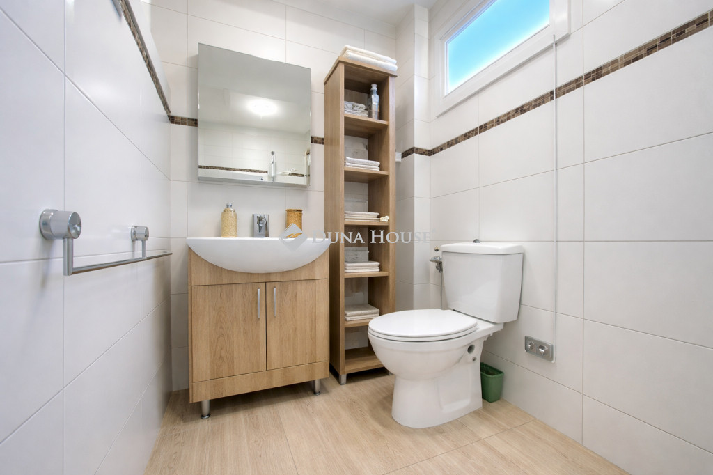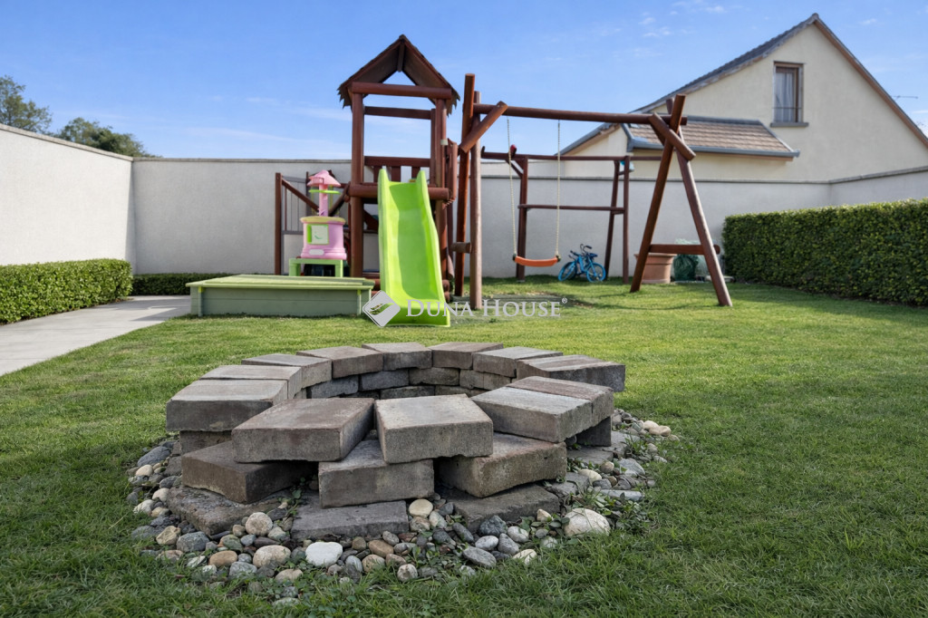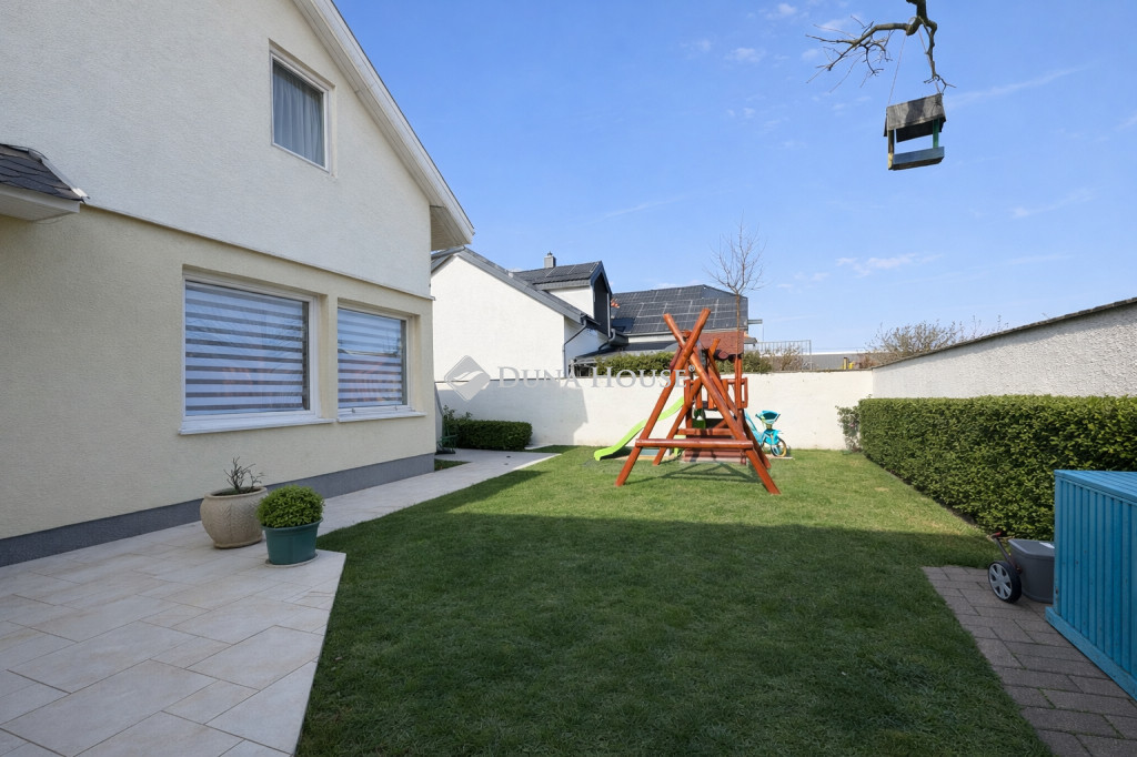 A HÁZ CSENDES ZSÁKUTCÁBAN HELYEZKEDIK EL, Pomáz központi részén található, közvetlen kertkapcsolattal rendelkezik egy hátsó terasszal. A kert ápolt, rendezett, levendula, jázmin, tujasövény, rózsák, díszfák és egy bográcsoló hely teszik igazán élvezhetővé. Az öntözést egy FÚRT KÚT biztosítja. A dolgozószoba felett beépített padlás van ( 30%-os belmagassággal), ezen kívül egy kamra ad helyet a kerti eszközöknek, szerszámoknak. Egy különálló 3 nm-es tárolót pedig a bicikliknek lett kialakítva. Két autóbeálló található a ház mellett. ( Bár az utcában átmenő forgalom az ingatlant követően egyáltalán nincs.)