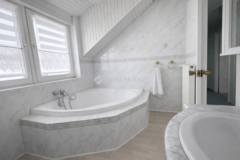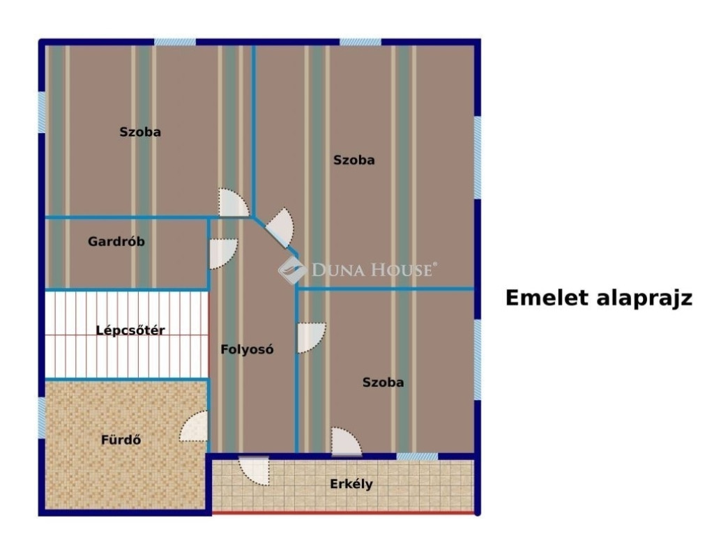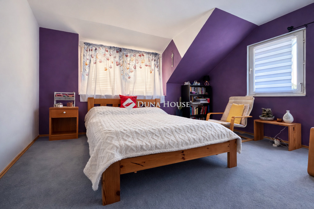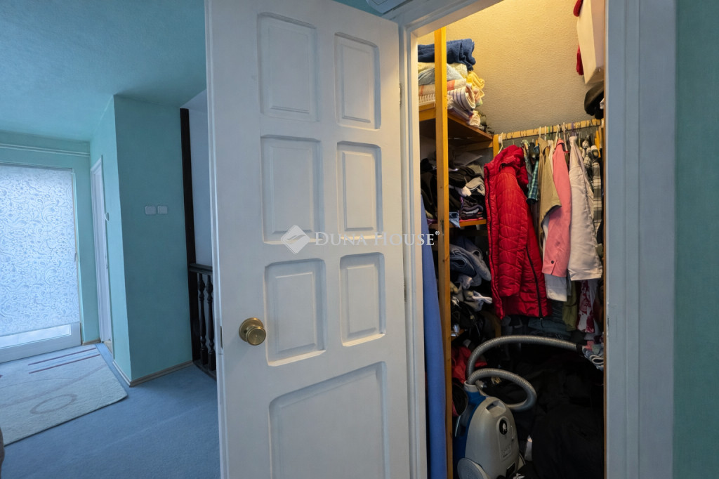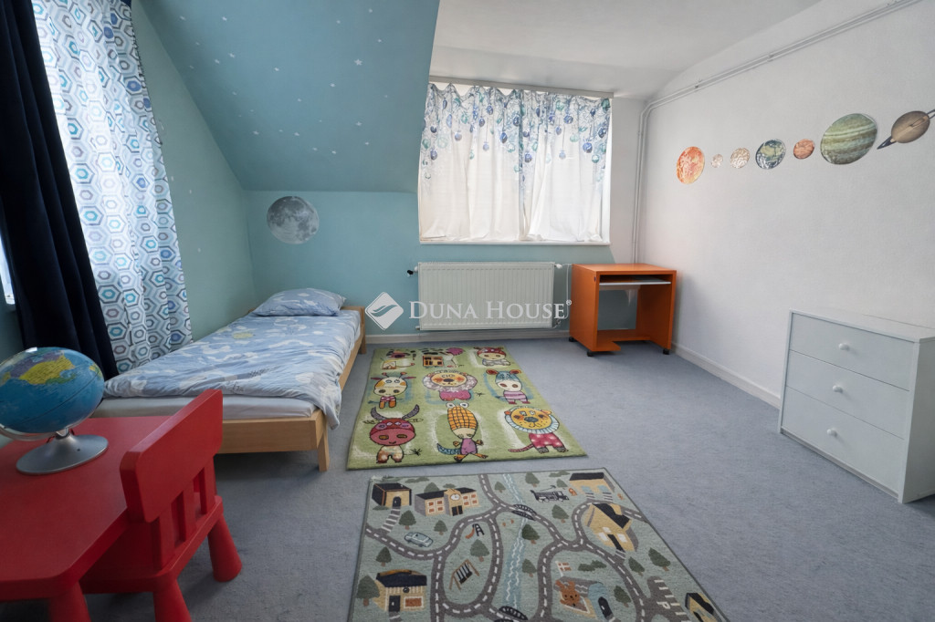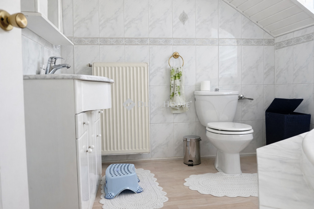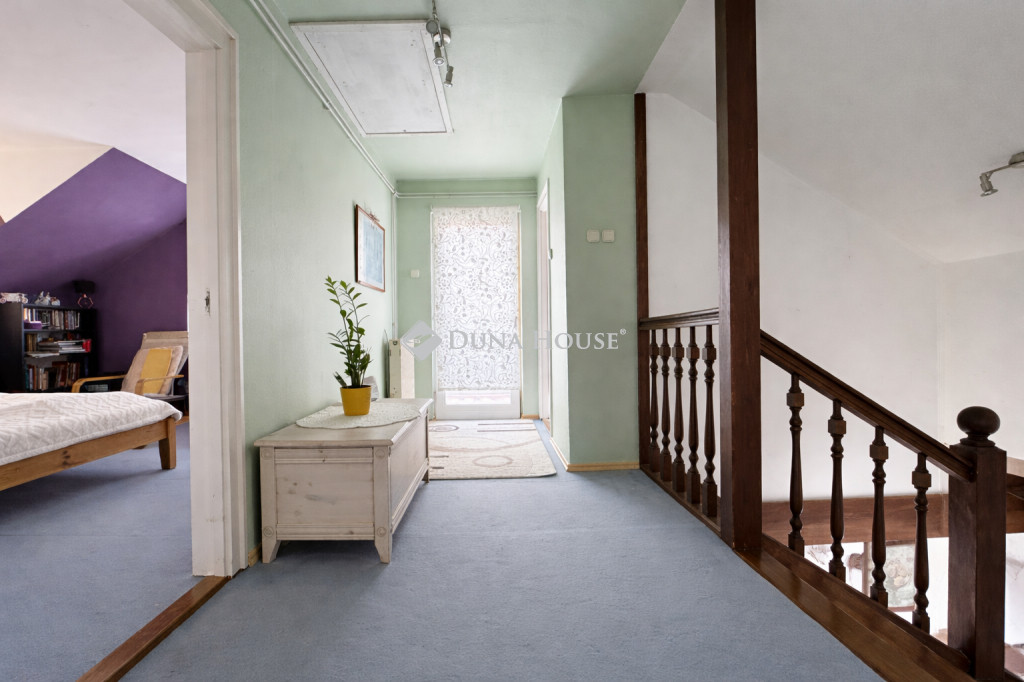 Az emeleten 3 hálószoba, egy gardróbszoba és egy sarokkádas fürdőszoba található. Az erkélyre az egyik hálóból és a fenti közlekedőből is van kijárat.