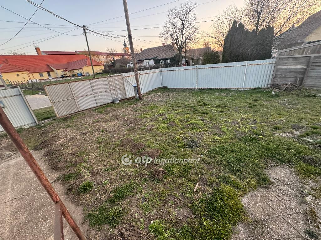 Udvara körbekerített (nagykapu elektromos kapunyitóval), rajta kerti csap, egyállásos lemezgarázs ~5x6 m.
