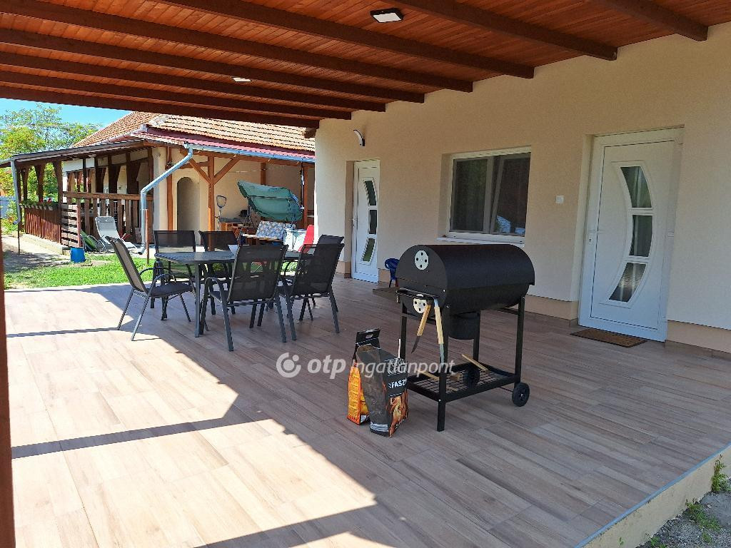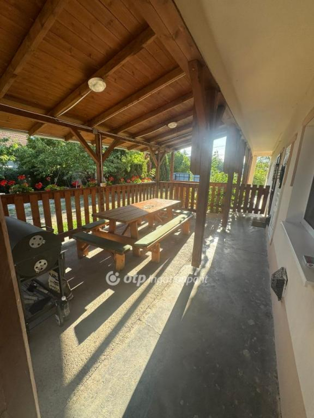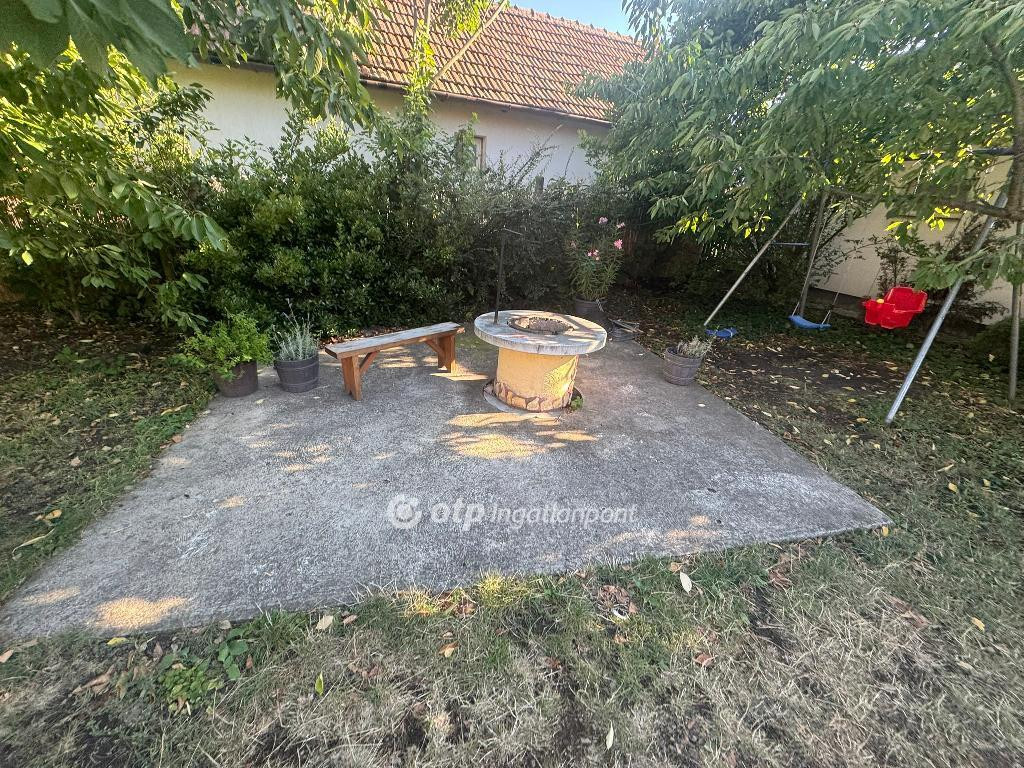 Udvara rendezett, parkosított, részben burkolt, körbekerített, rajta fúrt kút, dézsafürdő, fedett terasz, 80 db. gyümölcsfa (cseresznye, meggy, körte, szilva, birs, sárgabarack).