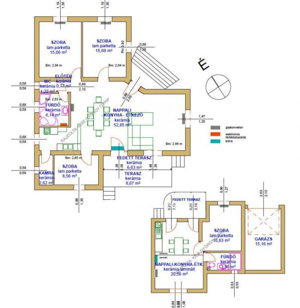 Fűtés: gáz-konvektor, klíma.