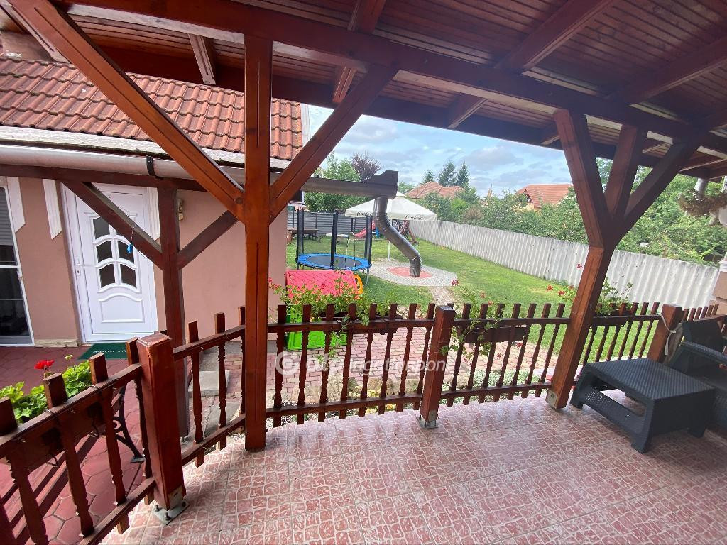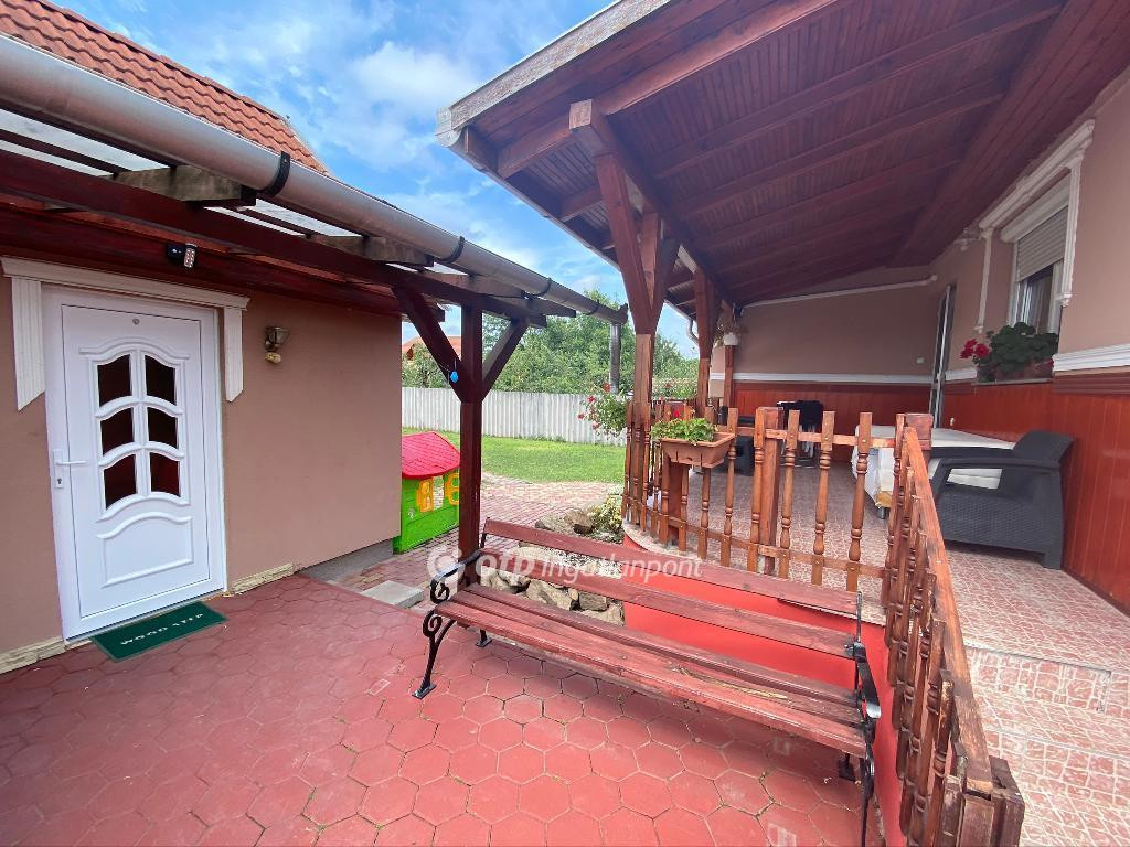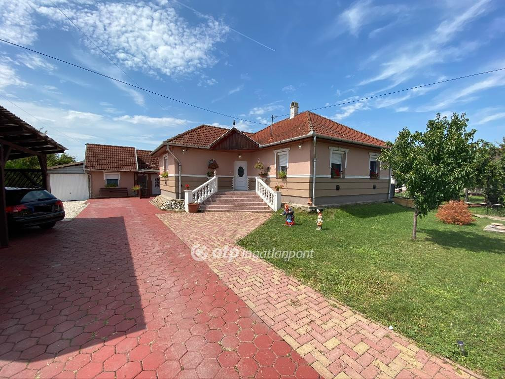 Tisza-tó partján fekvő Poroszló településen, frekventált helyen, de kifejezetten csendes, nyugodt, széles utcában, jó környéken, nagyon igényesen kialakított, kívül-belül kiváló állapotú, teljes közművesített, komfortos, összesen 138,22 m2 hasznos alapterületű családi ház eladó, különálló garzonnal együtt, jó adottságú és fekvésű, széles telekkel!!! A Tisza-tavi szabadstrand 1,3 km-re, 33-as főút 1,12 km-re! A nagyobb ház nappali+2+1 szobás, 102,91 m2 hasznos alapterületű. A különálló garzon nappali+egy félszobás, 35,25 m2 hasznos alapterületű, amely a főépület mögött helyezkedik el. Az épületek 2005-ben épültek, modern, minőségi anyagokkal, falakon nagyrészt gyapjú textiltapéta, a járólap spanyol kerámia burkolat, gránit ablakpárkány, duplaüveges műanyag nyílászárók, váltószárnyas ablakok réz osztóval, fürdőszobában masszázs zuhanyzó és kád, különálló lakásban dupla méretű zuhanyzó, fűtés gázkonvektorokkal (a nagy házban nagy teljesítményű látvány konvektorok), kandalló elhelyezés lehetősége a nappaliban, mindkét ház klimatizált (nappaliban), és mindkettőhöz külön-külön fedett terasz is tartozik. A főépület energetikai szempontból kitűnő, falazata Porotherm 30-as, külső alapvakolatra került a 7 cm-es hőszigetelés, erre a nemesvakolat, tetőn Bramac betoncserép, födém fagerendás 20 cm-es gyapottal, fölötte 6 cm perlitbetonnal. Az udvara szépen parkosítva van, részben térköves, kovácsoltvas kerítéssel teljesen körbekerített, 15 m2-es garázzsal, plusz kétállásos fedett kocsibeállóval, a nagykapuban a motor elhelyezés lehetősége ki van alakítva, kívül kamera rendszer. Az ingatlan előtt is ingyenesen lehet parkolni. A konyhabútorok az ár részét képezik, a többi bútor egyezség szerint (a nagyobbik házban a mosogatógép is a bútor és az ár része).