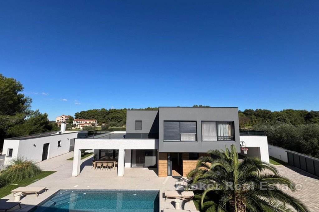 Located in a peaceful residential area of Pula, this family villa is built to a high standard for the personal needs of the owner, with a focus on functionality and comfort. Modern and carefully designed, the villa offers 200 m² of thoughtfully organized living space on a spacious 733 m² plot. The upper floor serves as the private area of the house, featuring a master bedroom with a large walk-in closet, two spacious bedrooms, a private gym and sauna, and an elegant bathroom with a walk-in shower and high-quality fixtures. The ground floor includes an open-plan living and dining area and a functional modern kitchen, along with two bathrooms, one with a bathtub for relaxation and the other for guests. A multifunctional room currently used as a playroom can easily be adapted as an additional bedroom, office, studio, or hobby space. The exterior provides a sense of privacy, with a heated swimming pool and a well-maintained garden. The summer kitchen or winter garden, equipped with air conditioning and a private WC, allows for comfortable use of the space for gatherings and family activities. The villa also includes a garage for two cars, additional outdoor parking spaces, and an external storage area for equipment. The villa has been constructed with an emphasis on quality and technical performance. Underfloor heating ensures comfortable warmth without radiators, while the high-quality construction and thoughtfully planned layout create a sense of spaciousness and privacy. Materials were carefully selected to make the villa a comfortable home, rather than just a property for sale. BROKER REFERENCE ID:2058/02