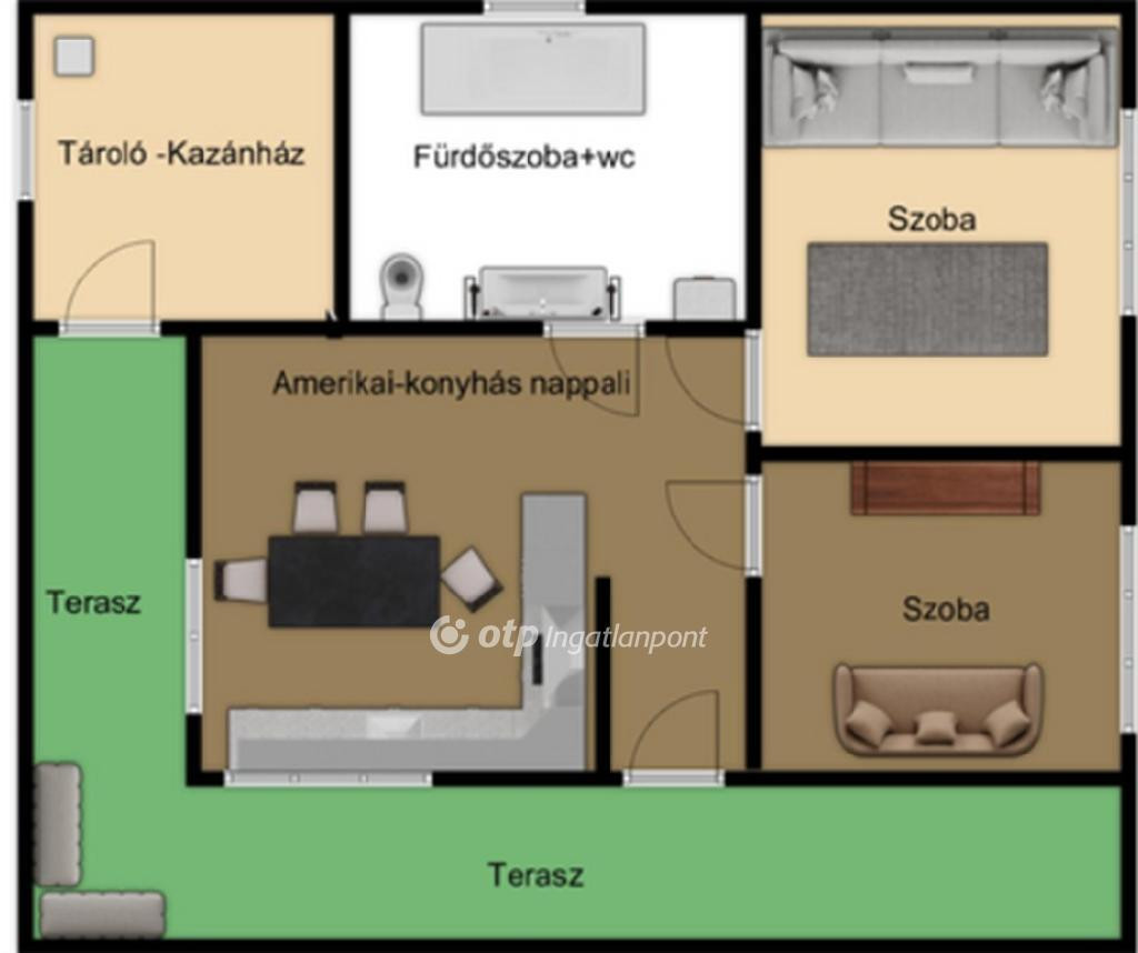 -a belső helyiségben : előszoba , szoba , 1/2 szoba , amerikai konyhás nappali , fürdőszoba +wc lett kialakítva.