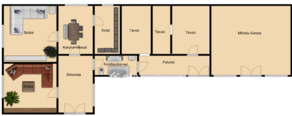 Tovább haladva az ingatlan vonulatában 30m2 építménnyel találkozunk , amely műhelyként-garázsként is egyaránt funkcionálhat.