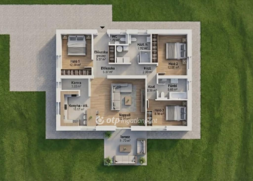 Fejér megye, Pusztaszabolcs 106 nm-es családi ház 460 nm-es saját kerttel eladó. A most épülő, tégla falazatú, szigetelt ingatlan a település központjához közel, mégis csendes környezetben található. A kulcsrakész állapot várható átadása 2026. nyár vége. Az ingatlan hasznos alapterülete 100 nm. Az modern házban nappali, 3 szoba, konyha, kamra, 1 kádas és 1 zuhanyzós fürdőszoba, 1 külön WC található, valamint tartozik hozzá 11,7 nm-es terasz és murvázott kocsibeálló. Az épület B30-as téglából, 15 cm-es homlokzati, 25 cm-es födém szigeteléssel épül. Az összes nyílászáró 3 rétegű műanyag, redőnnyel és szúnyoghálóval felszerelt. Fűtése elektromos padlófűtéssel, elektromos panelekkel és 2 db hűtő fűtő klímával biztosított. Napelemrendszerrel felszerelt. A házban még a beltéri ajtók, minden belső falszín, burkolat színe és mintája választható. A vételár tartalmazza a kulcsrakész állapotot, kerítéssel, murvával, térkövezéssel és tereprendezéssel. A közelben iskola, óvoda, bevásárlási lehetőségek, orvosi rendelő, polgármesteri hivatal, posta, vasútállomás. Jól átgondolt, élhető terekkel megálmodott, a legújabb rendszerek felhasználásával készülő ingatlan megvásárlásával egyszerre teremthet egy igényes, stílusos és barátságos otthont. Teljes körű ügyintézésben segítjük ügyfeleinket díjtalanul: Falusi CSOK, CSOK igénylése, kedvezményes hitel mobil bankári szolgáltatással, adásvétel teljes lebonyolításával. Bővebb információkért, kérem keressen bizalommal.