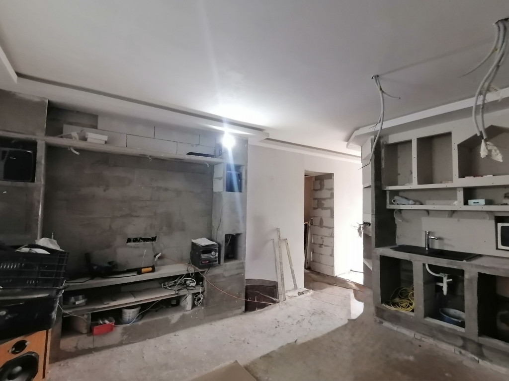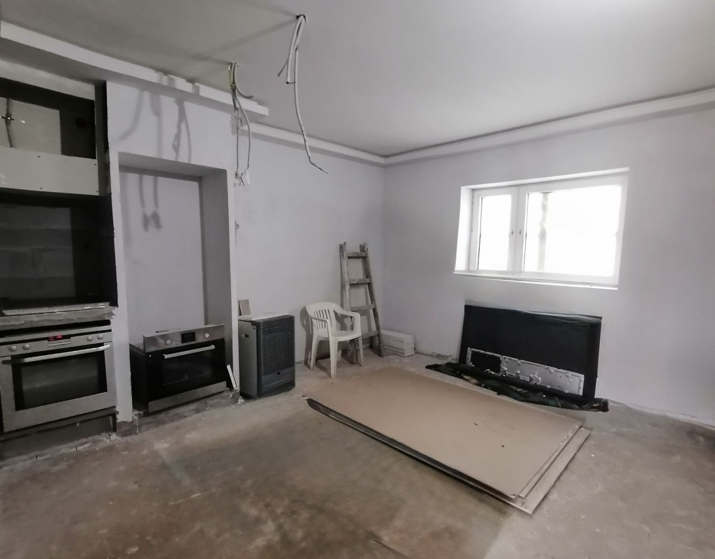 A ház helyiségei : előszoba, amerikai konyhás nappali, fürdőszoba és 2 hálószoba a mostani elrendezés szerint. Jelenleg felújítás alatt van és ahhoz hogy minden helyiség funkcionálisan használható legyen, be kell fejezni a felújítási munkálatokat.