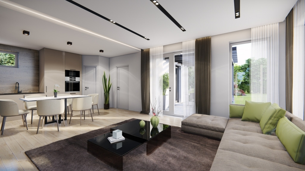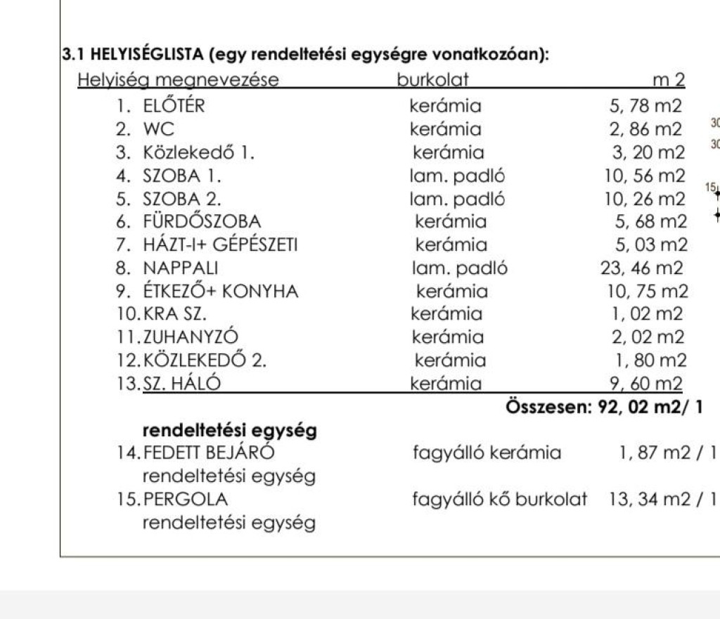 533 m2-es telken épül. A lakóház nettó 92 m2 (+13 m2 terasz) és a következő helyiségekből áll :