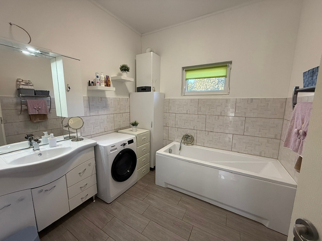 -A könnyűszerkezetes rész kívül 15 cm(eps) szigeteléssel van ellátva, a szerkezetben további 15 cm kőzetgyapot van, a födémen pedig 30 cm, az aljzatban 30 cm lépésálló szigetelés. Itt padlófűtéses az ingatlan, a hálószobákban pedig radiátorok vannak, ami kombi gázkazánról működik.
