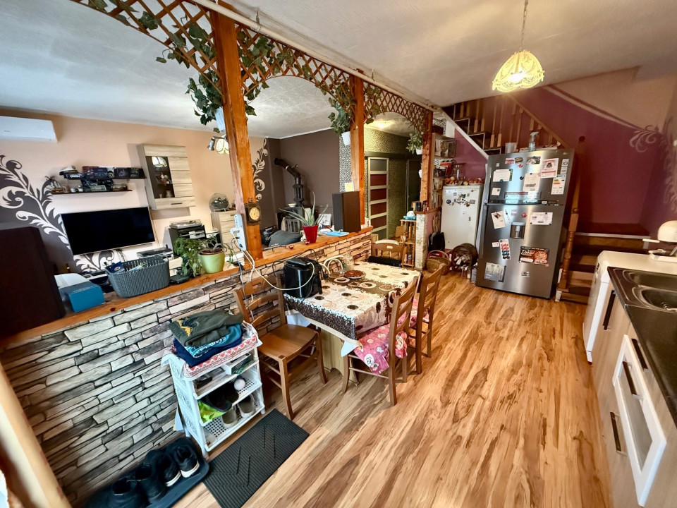 Többféle fűtésrendszerrel szerelt: vegyes tüzelésű vízteres kandalló, radiátoros hőleadással; 2 db gázkonvektor és 1 db, 2 éves hűtő-fűtő klíma az amerikai konyhás nappaliban.