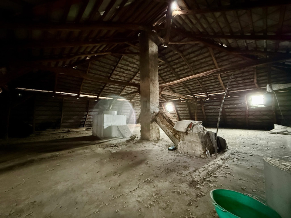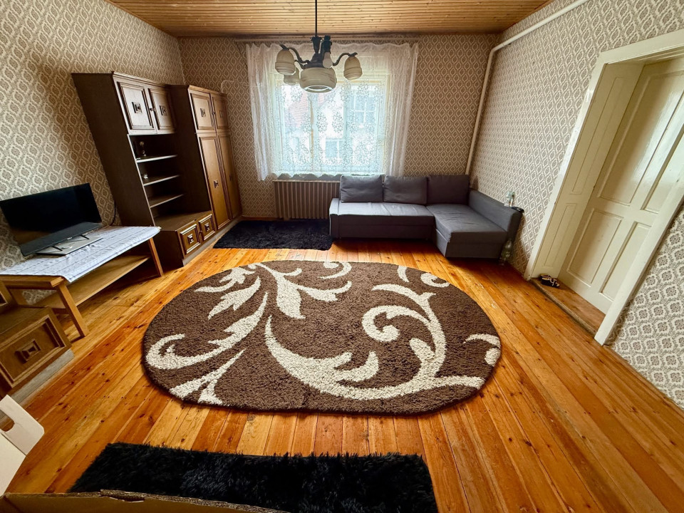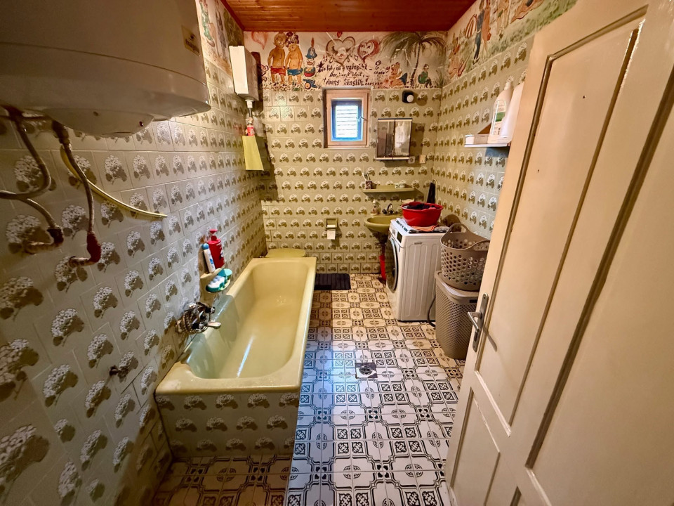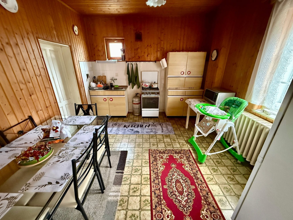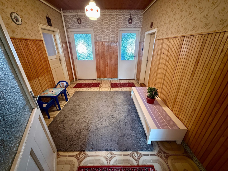A lakórész 3 szoba (nappali + 2 hálószoba), előszoba, konyha, kamra, közlekedő, fürdőszoba elrendezésű.
