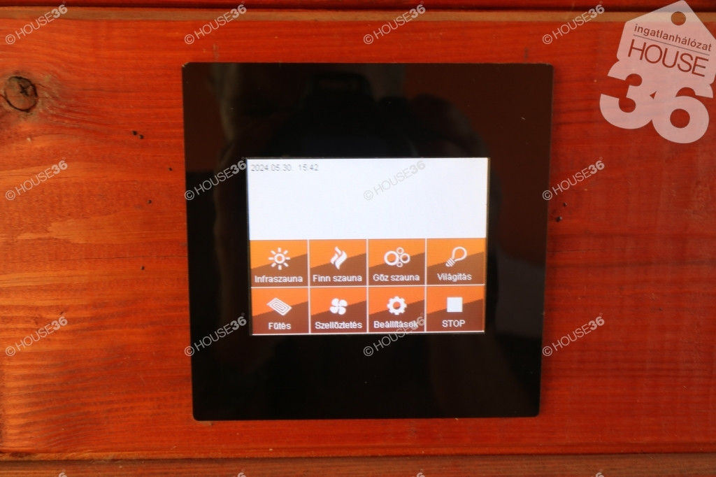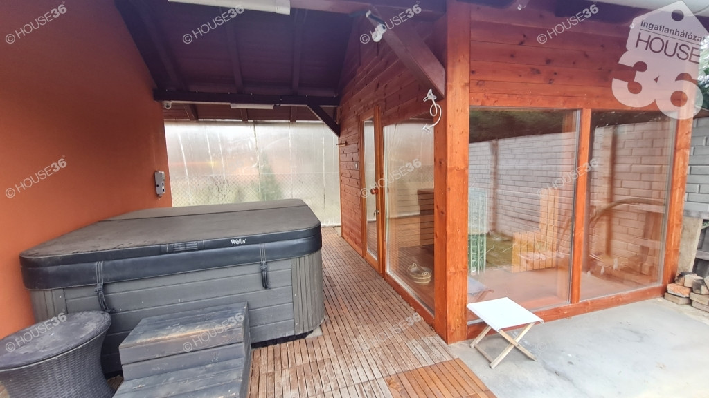 - nagyméretű (okos) 12 személyes szauna, 6 személyes jakuzzi, kerti pult és sütögető, kerti tó (díszhalakkal), fürdőtó
