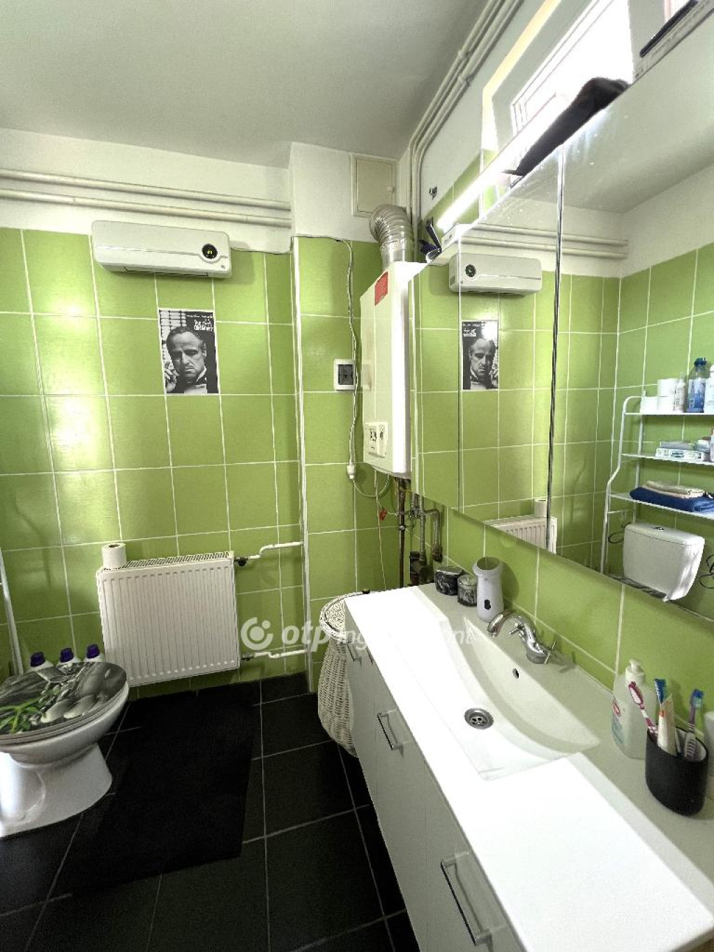 A ház fűtéséről és meleg víz ellátásáról egy kondenzációs, új gáz-cirkó gondoskodik radiátorokkal. A nappaliban egy kandalló is ki lett építve.