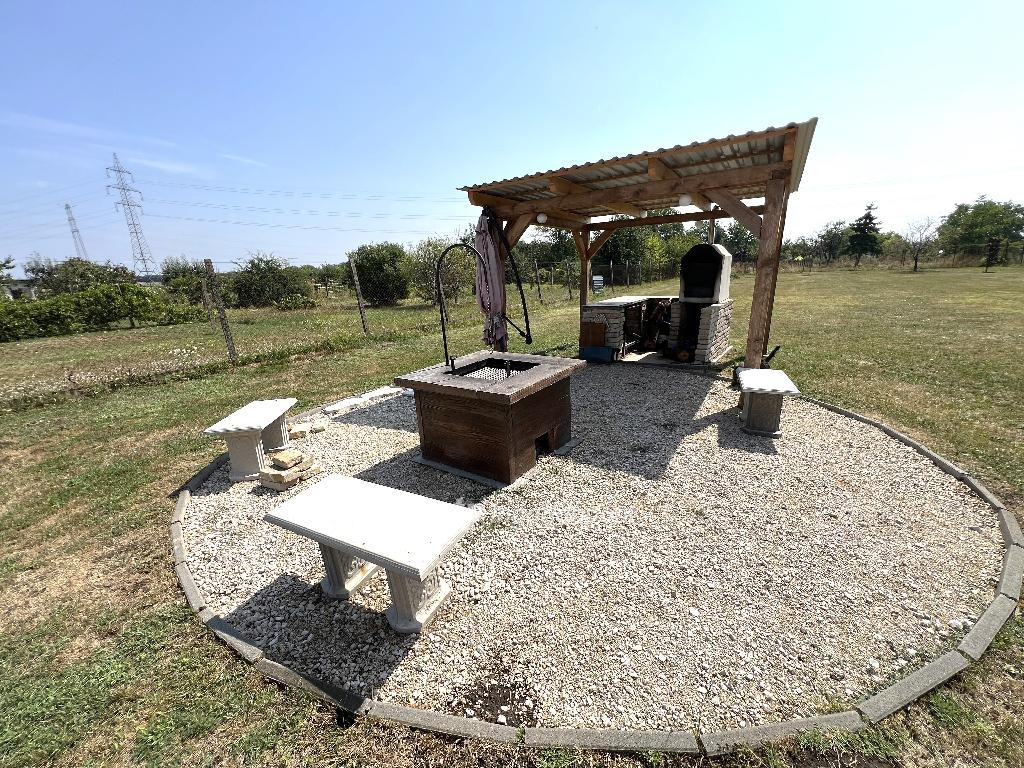 A kertben bográcsozó, kemencével és egy szaletli található. A növények öntözésére, a jakuzzi feltöltésére fúrt kút áll rendelkezésre. A hatalmas kert gondozására egy fűnyíró traktor is rendelkezésre áll. (Szintén megegyezés kérdése a traktor ára.)