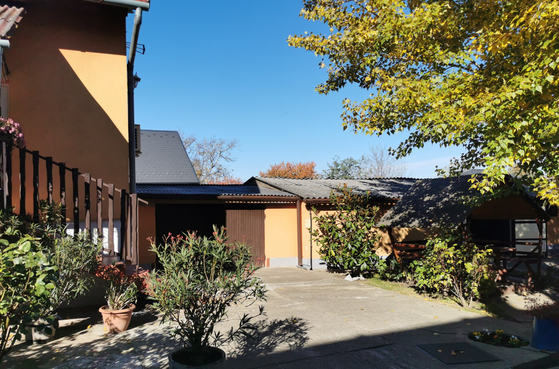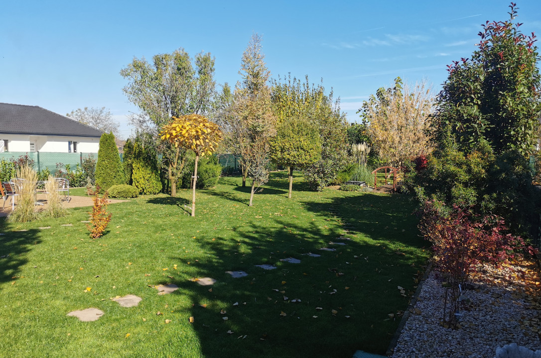 Kert: parkszerű kert 670m2 (22x33,5 m) rendszeresen karbantartott és sokat ápolt füvesített,