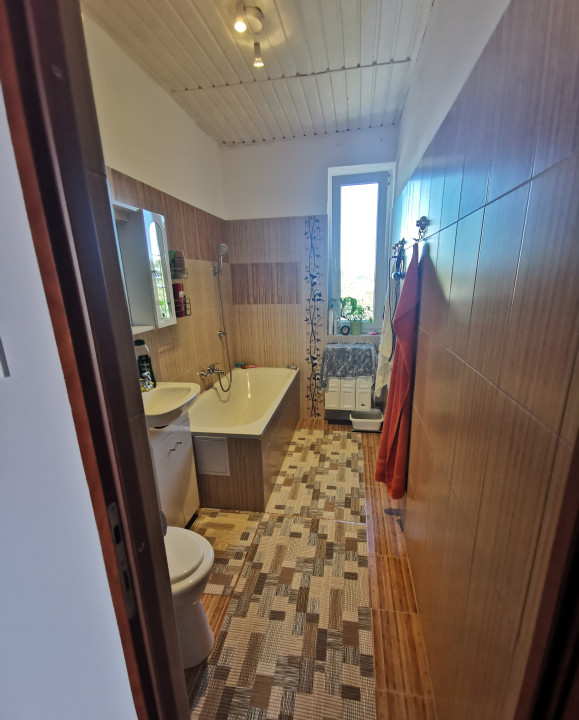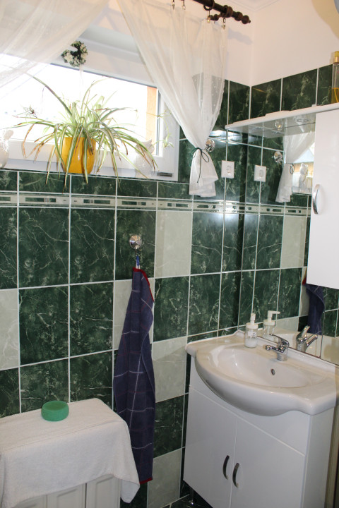 zuhanyzós fürdőszoba 4,5 m2, külön WC 0,8 m2, közlekedő 5,7 m2,