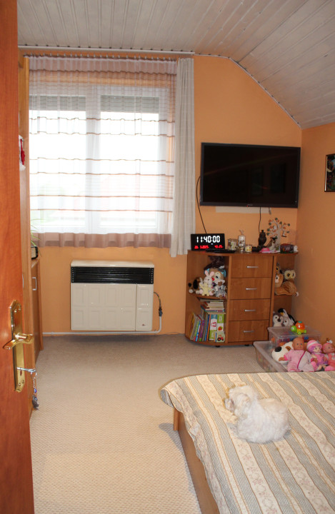 Emelet (tetőtér) 40m2 - 2 db 11,4 m2 -mindkettő padlószőnyeges-, előtér 7,5 m2 -padlószőnyeges,