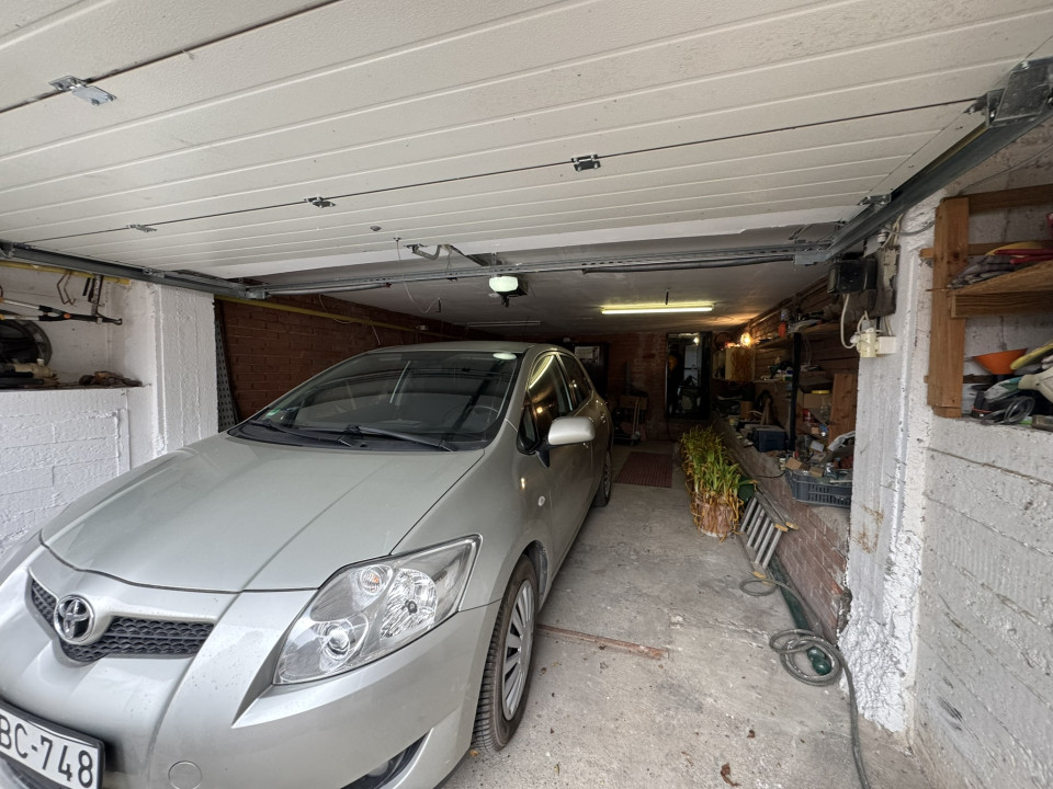 •különálló garázs, melyből nagy méretű tároló nyílik