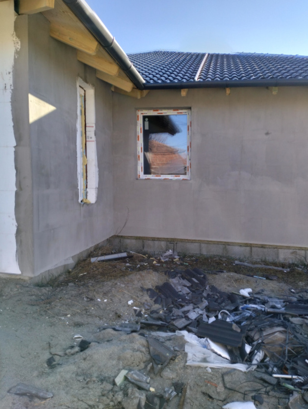 Az épület főfalai 30-as Leier téglából épültek 15 cm -es homlokzati szigeteléssel,aljzat szigetelés 14 cm-es,födém szigetelés 20 cm-es, 5 légkamrás, 3 rétegű üvegezésű fehér színű műanyag nyílászárók, beton cserép, energia takarékos hőszívattyús fűtés /padló fűtés minden helyiségben a garázsban is/.Minden helyiség ablakos , átszellőztethető és napfényes.