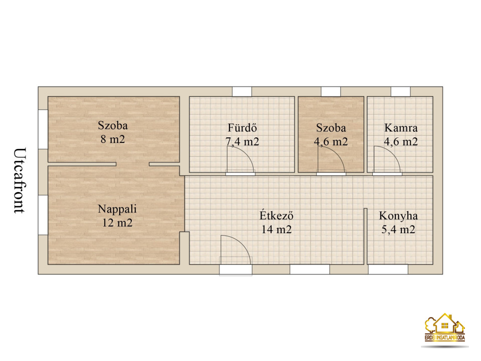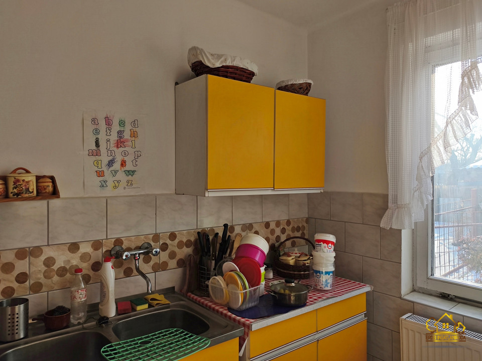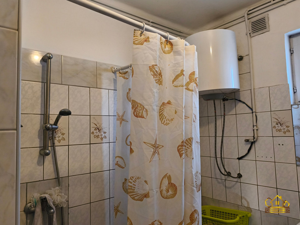 Az ingatlanban egy tágas nappali, 2 félszoba, nyitott konyha, spájz és tusolós fürdő egyben a toalettel kapott helyet.