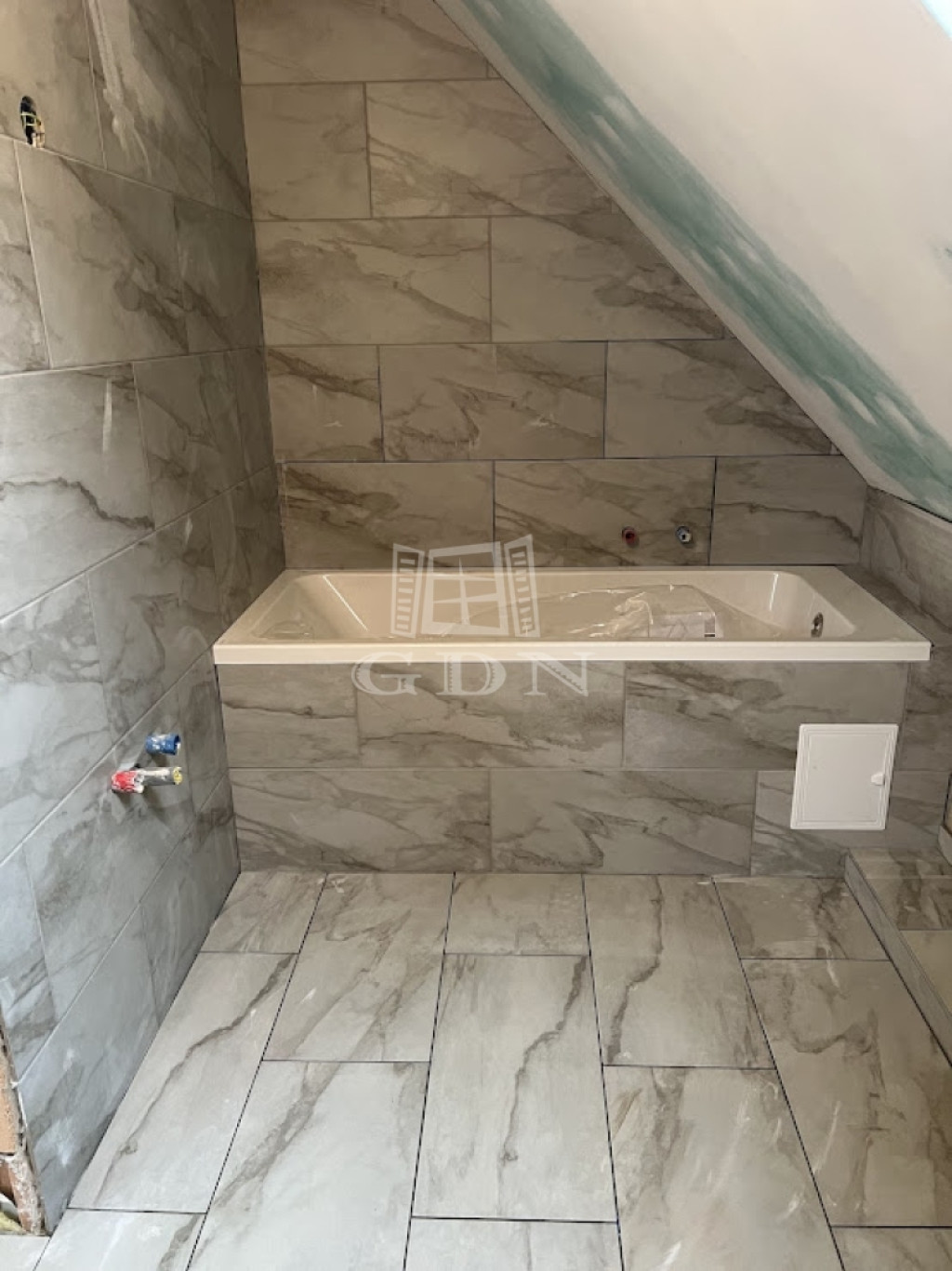 A lakás 90% készültségi állapotban van. 102 nm nettó alapterületű 2 szintes, +19 nm fűtött garázzsal. Összesen 121m2. 3 szoba amerikai konyha, nappali, fedett terasz, dupla komfort, gardrób. 33% helyben előállított villamosenergia, amiről napelemek gondoskodnak. A locsoláshoz fúrt kút biztosítja a vizet. Klíma kiállások előkészítve. Riasztórendszer kiépítve. Az konyhabútor elkészítéséhez szakembert tudunk biztosítani!