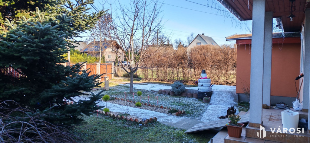A teraszról kilépve egy gyönyörűen parkosított udvar fogad, ahol a fúrt kút segítségével könnyedén fenntartható a kert szépsége. A melléképület és az udvari gépjárműbeálló lehetőség további praktikus előnyöket nyújtanak. A ház biztonságáról riasztó rendszer és a legmodernebb villamoshálózat gondoskodik.