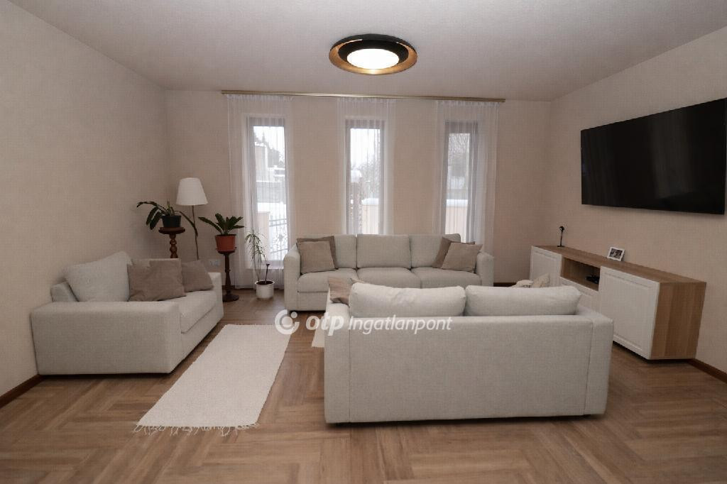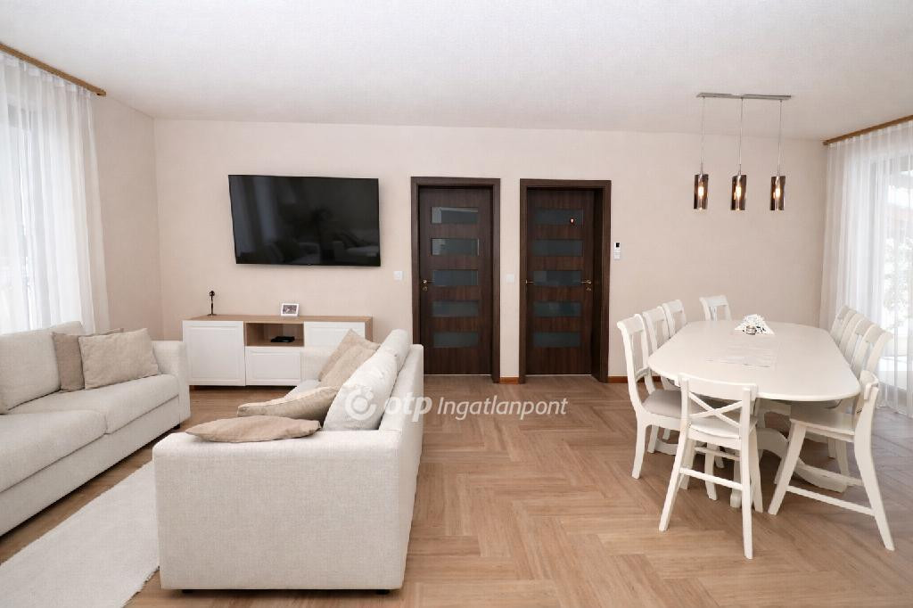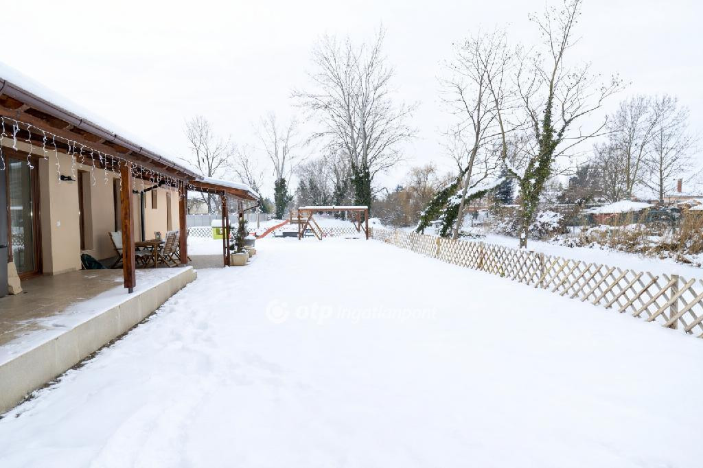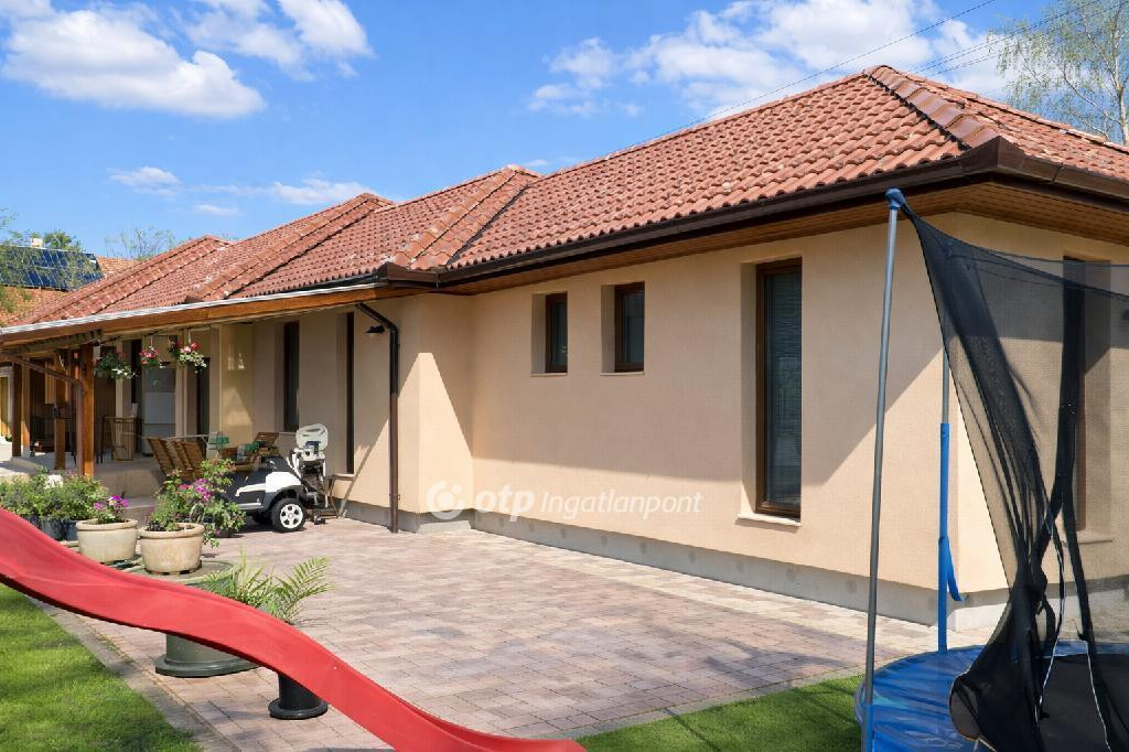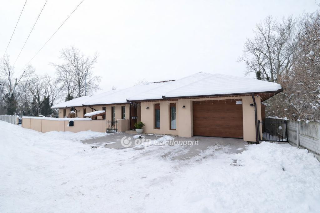 Ráckeve egyik legkedveltebb részén, különlegesen szép, természetközeli környezetben, közvetlen saját vízparttal rendelkező családi ház eladó. A prémium minőségű ingatlanhoz 1152 m2-es, nagy méretű, ősfás udvar tartozik, amely páratlan hangulatot és nyugodt életteret biztosít. A ház 2022-ben épült téglából, 20 cm vastag hőszigeteléssel, korszerű műszaki tartalommal, minden helyiségben -még a garázsban is- padlófűtéssel kialakítva. A fűtött hasznos alapterület 158 m2, amelyből 137 m2 a lakótér és 21 m2 a fűtött garázs, mindezt egy 25 m2-es, a vízpart felé tájolt fedett terasz egészíti ki. A kiváló elosztású otthon egy tágas, világos, egy légterű nappali-étkező-konyha térrel rendelkezik, amely ideális családi és baráti együttlétekhez, emellett négy külön bejáratú hálószoba biztosítja a zavartalan pihenést. A további kényelmet két fürdőszoba Wellis szaniterekkel, beépített szekrények, valamint külön vendég mosdó szolgálja. A felhasznált burkolatok, nyílászárók és egyéb anyagok mindenhol prémium minőséget képviselnek. A házban összesen három darab klímaberendezés került beépítésre, a teraszajtón és az üzlethelyiség ablakain elektromos redőnyök gondoskodnak a kényelemről. Az ingatlan egyik különlegessége a házon belül kialakított, sokféle vállalkozásra alkalmas exkluzív üzlethelyiség, amely fodrászatnak, műkörmös szalonnak, irodának vagy home office célra is ideális. Az üzlethelyiség külön bejárattal is rendelkezik, ugyanakkor a lakótérből is közvetlenül megközelíthető, így akár két generáció együttélésére is alkalmassá teszi az ingatlant. Az üzletben külön konyha, beépített LED világítás, beépített hangszórók, valamint mosdó, WC és zuhany kiállások kerültek kialakításra, így teljesen önálló egységként is használható. A gondosan kialakított kert különleges, természetközeli hangulatot áraszt. A telek végében található, mintegy 80 méter hosszú saját vízpart közvetlen kapcsolatban áll a Ráckevei Soroksári Dunával, így a víz közelsége mindennap élvezhető. A víz felé néző, tágas, 25 m2-es fedett terasz kiváló helyszíne a pihenésnek és az együttléteknek, melynek kényelmét tovább emeli a teraszon kialakított, fából készült kerti konyha. A kertben automata öntözőrendszer működik, az előkert fákkal és bokrokkal parkosított, a gyermekek számára játszótér került kialakításra az elektromos nagykapuval ellátott, térkövezett kocsibeálló folytatásában. A ház mögött zárt tároló szolgál a kerti eszközök elhelyezésére, a kertben pedig egy félig nyitott tároló áll rendelkezésre például kerékpárok számára. A parkolás kényelmét a padlófűtéssel ellátott garázs, valamint a ház előtt és az udvarban kialakított, viacolorral burkolt beállók biztosítják. A fűtésről és a melegvíz-ellátásról kondenzációs kazán puffertartállyal gondoskodik. Az összközműves ingatlan a modern fűtési rendszernek, a vastag szigetelésnek, a kiváló minőségű nyílászáróknak valamint az energiatakarékos műszaki berendezéseknek, világítótesteknek köszönhetően rendkívül alacsony rezsiköltséggel üzemeltethető. A fűtés és az áram havi költsége egyaránt mindössze 10 ezer forint. Összességében ez az ingatlan a kedvelt, rendezett, városközponthoz közeli elhelyezkedés, a közvetlen vízpart, a rendkívül különleges természetközeli környezet, a tágas, ősfás udvar, a prémium műszaki és esztétikai kialakítás, valamint a sokoldalúan hasznosítható üzlethelyiség miatt is kiemelkedő lehetőség. Az ingatlan tehermentes, akár egy hónapon belül költözhető. Alkalmas az Otthon Start államilag támogatott hitel és a CSOK+ igénybevételére is, valamint igény esetén a vásárláshoz az OTP Bank személyre szabott, kedvezményes finanszírozási ajánlataival és díjmentes hitelügyintézéssel nyújtunk segítséget. Ha egy valóban egyedi adottságokkal rendelkező, rövid határidővel költözhető otthont keres, amely egyszerre szolgálja a kényelmes családi életet és a munkavégzés lehetőségét is, akkor ezt az ingatlant mindenképpen érdemes személyesen is megtekinteni.