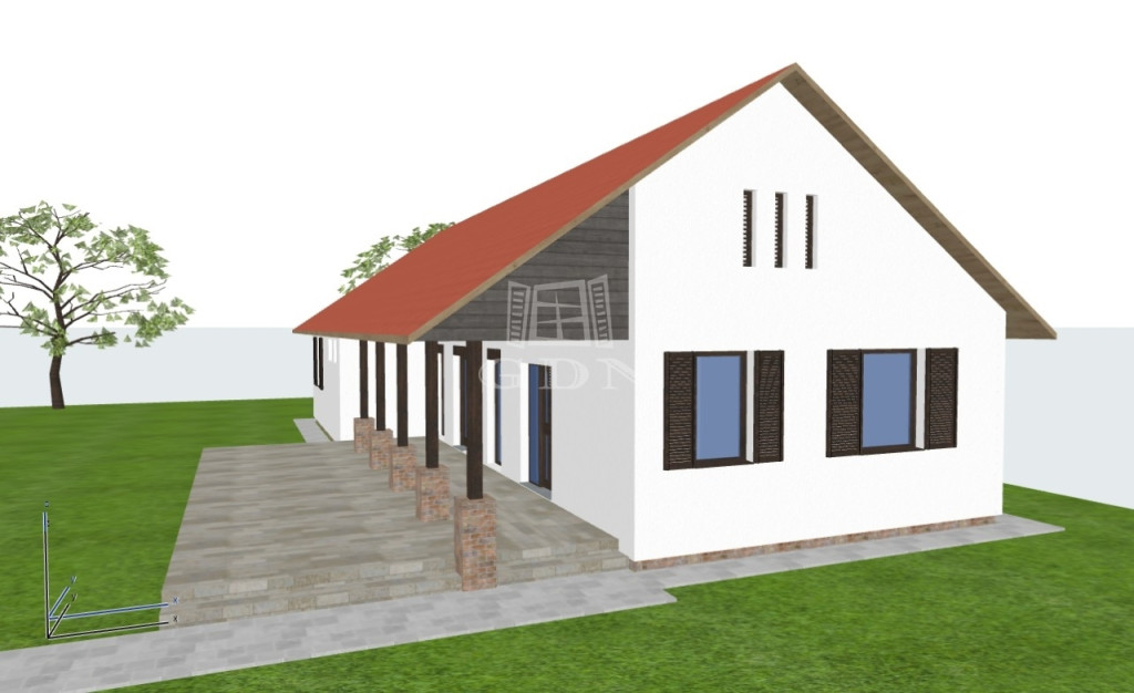 Az otthon nettó 108,08 m2 lakótérrel, 57.23 m2 részben fedett teraszkapcsolattal, 1105 m2 körülkerített teleken épül meg.