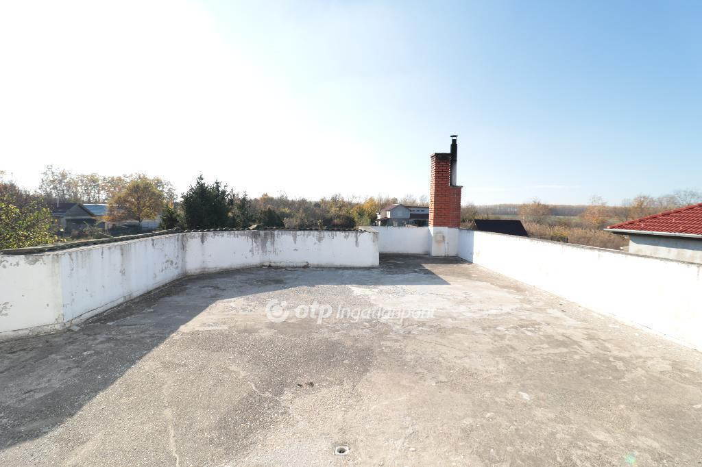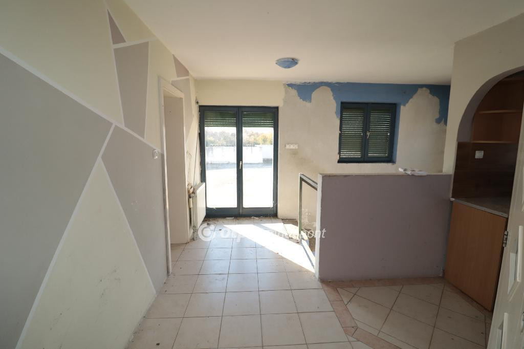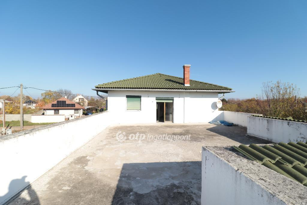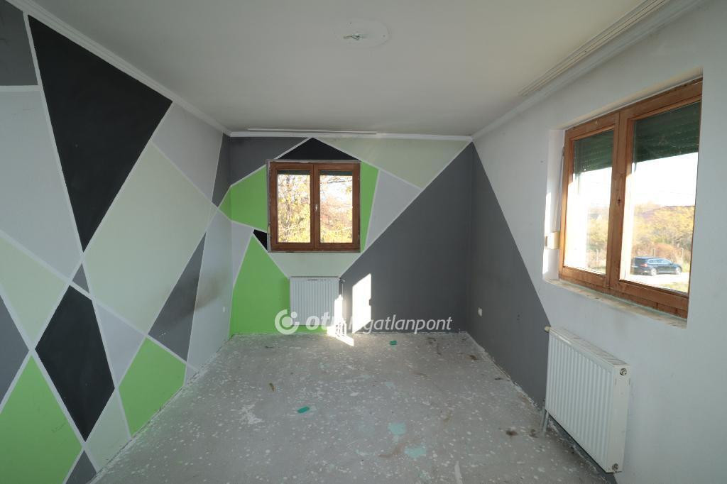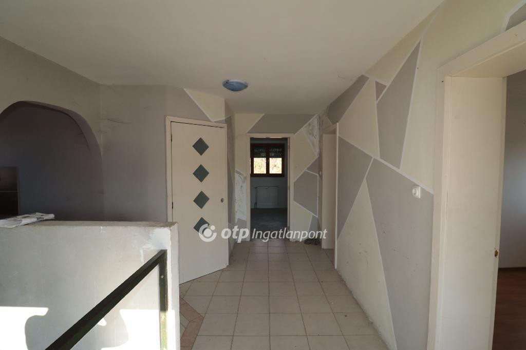 A téglaépítésű, betonfödémes ház 2006-ban épült, összesen 213 m2 lakóterülettel rendelkezik. Az alsó, 144 m2-es szinten egy nagy nappali étkezővel, konyha, két hálószoba, fürdőszoba, külön mellékhelyiség, kazánház és mosókonyha található. A felső, 68 m2-es szintre kényelmes, betonból épült lépcső vezet, ahol három külön bejáratú szoba és egy második fürdőszoba kapott helyet. Mindkét szinten tágas teraszok egészítik ki a lakóteret, a felső teraszról gyönyörű kilátás nyílik a környékre. A házhoz tartozik egy 32 m2-es garázs, amely kényelmes parkolási lehetőséget biztosít. Az ingatlan minden közművel ellátott :vezetékes víz, áram, csatorna és gáz a házban azonban a gázóra jelenleg le van szerelve és a fűtés nem működik.