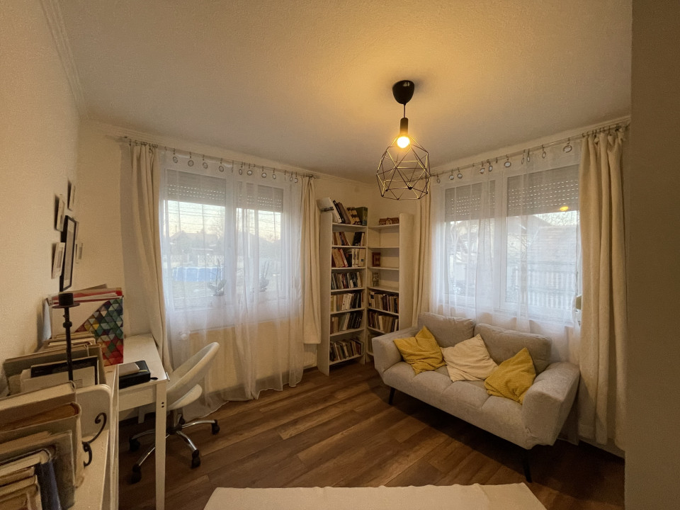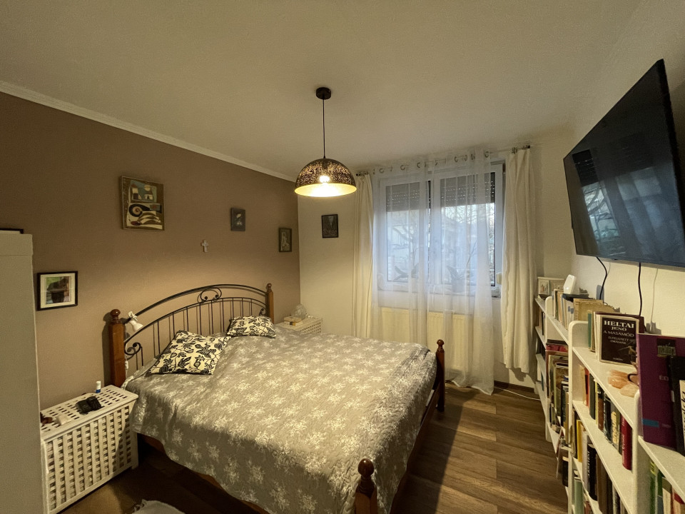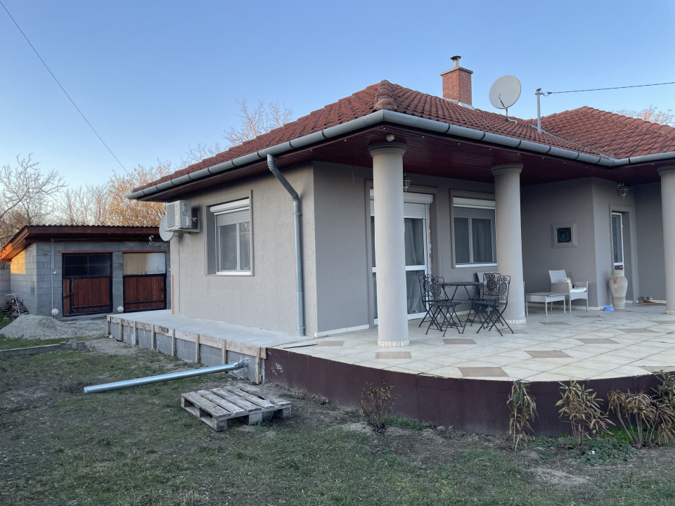 A 848 m²-es telken található, 106 m²-es, 40-es Porotherm téglából épült, betonfödémes családi ház 2003-ban épült, 2025-ben felújításon esett át. A tetőtér beépíthető, így tovább bővíthető az ingatlan. Helyiségek: amerikai konyhás nappali, spájz, két szoba, sarokkádas fürdőszoba WC-vel, valamint külön vendég WC. A ház 10 cm-es dryvit szigeteléssel ellátott. Fűtése gáz cirkóval megoldott, padlófűtéses és radiátoros hőleadással, továbbá klíma és riasztórendszer is biztosítja a kényelmet és biztonságot. A 30 m²-es fedett terasz kiváló életteret nyújt, a telken pedig egy különálló 36 m2 melléképület is található, amely alkalmas apartman, fitness- vagy hobbihelyiség kialakítására. Megkezdett gépkocsibeálló rendelkezésre áll. Az ingatlan igény szerint teljes bútorzattal eladó, és azonnal költözhető.
