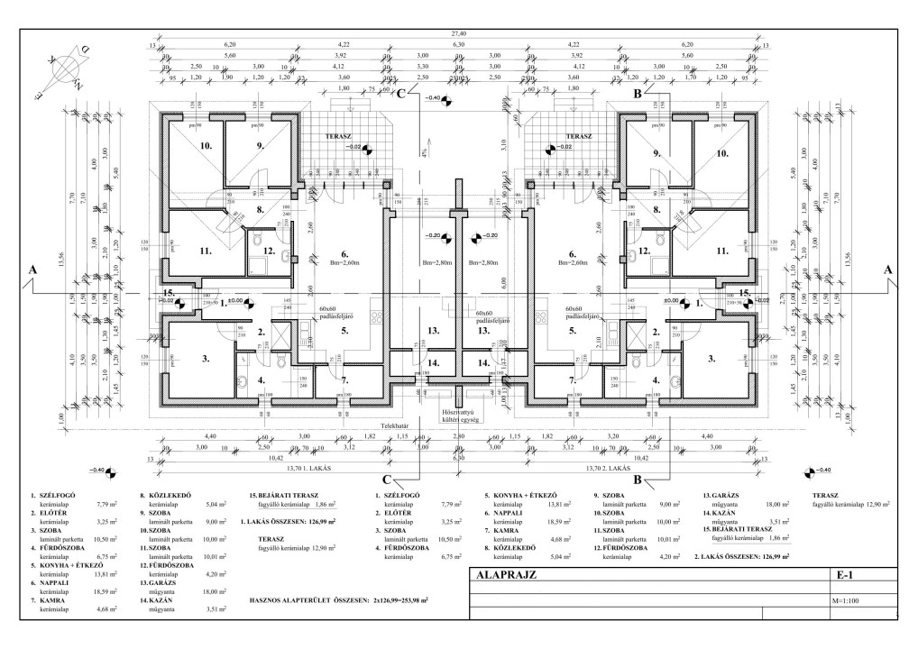 Mindkét lakás tartalmaz 4 szobát, amerikai konyhás nappalit, 2 fürdőszobát, spejzt, gardróbot, garázst. Akár 3 gyermekes család kényelmes lakhatását is biztosítja. Az épületek minőségi kivitelezéssel, prémium kategóriájú anyagok felhasználásával készülnek. Az ingatlanok 30 cm-es Porotherm téglából épülnek, 15 cm-es grafitos dryvit szigeteléssel, műanyag 7 légkamrás nyílászárókkal, valamint a tető Bramac beton cserépfedéssel kerül kialakításra. A fűtésről, hűtésről és a meleg vízellátásról, energiatakarékos, hőszivattyús fűtési rendszer (padlófűtés), illetve 3,6kW hűtő fűtő klíma gondoskodik.