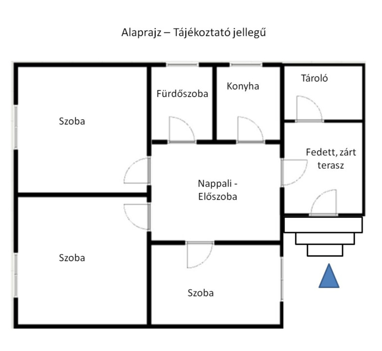 - a bejárat előtt egy 8m2-es fedett, zárt terasz húzódik