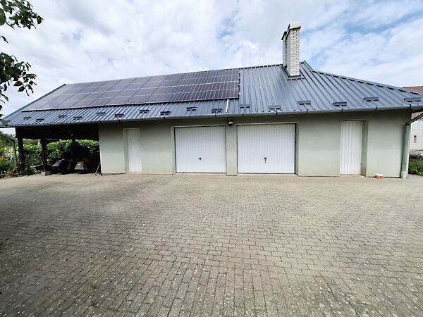 Térkövezett bejáró, riasztórendszer, dupla garázs, melléképület, tágas, 60 m²-es pince
