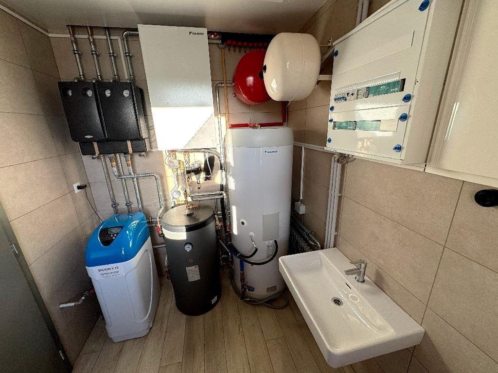 Fűtési rendszer: Elektromos hőszivattyús rendszer, padlófűtéssel, mennyezetfűtéssel és alacsony energiafogyasztással.