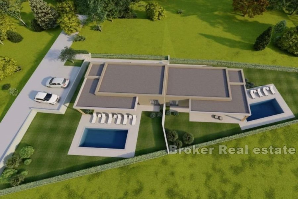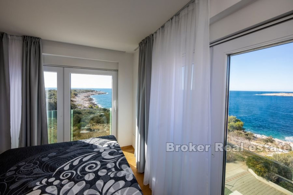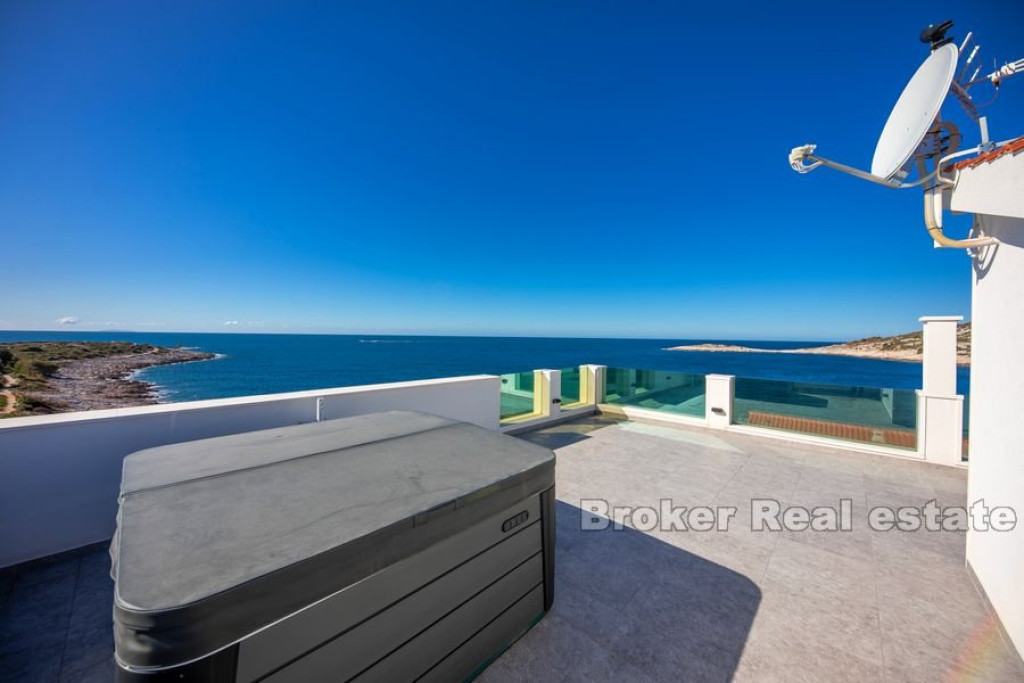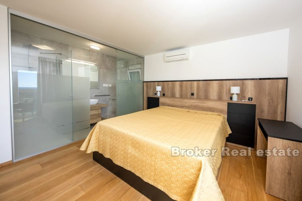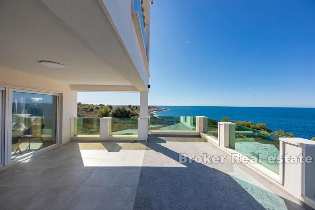 Luxury family villa with high standard of construction. It is located at the end of a beautiful bay near Rogoznica, at the very end of the access road, where it is isolated from numerous holiday homes and tourists, the noise of the car, giving it peace, quietness and privacy. The villa consists of basement, ground floor, first and second floor. In the basement there is a garage that directly enters the villa, the engine room, the technical room, several empty rooms where is predicted to be additional apartment or contents such as a cinema, gym, etc. On the ground floor there is a kitchen, a guest toilet, a living room, a dining room, a large terrace and a swimming pool. On the first floor there are 3 bedrooms and one bathroom, two of bedrooms have their own bathroom. On the second floor there is a sauna and a large terrace with a 360 degree view. On the terrace there is installations for kitchen and a jacuzzi. There are several possible parking places around the villa, one of which is in the garage. The villa is built with high quality materials, a large amount of stone, marble, tiles and glass, among others, glass fences that will be installed later. Throughout the villa, the central floor heating is extended, while in the bathrooms there is additional electric floor heating. An additional type of heating and cooling takes place over the air conditioner, which almost every room has. Distance from the town of Rogoznica is 10km, while the distance from Split Airport is 30km. BROKER REFERENCE ID:2022/112