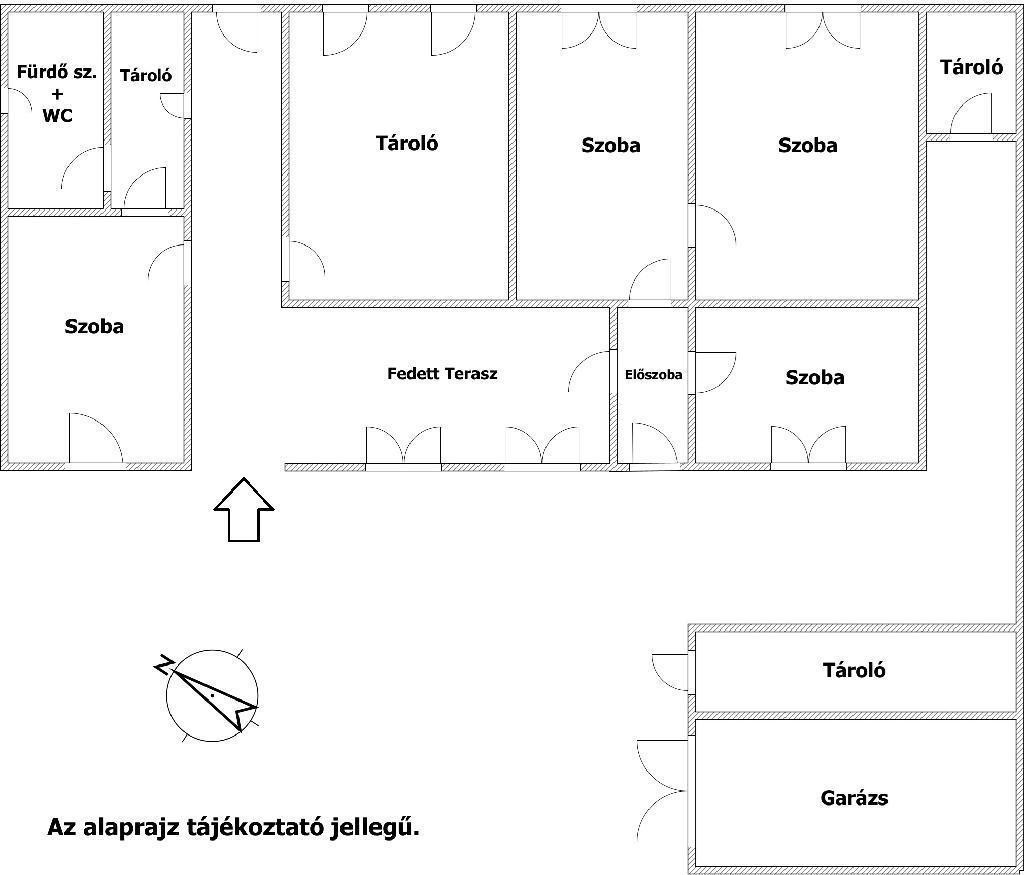 Az ingatlan alapterülete 108 m2-es, amely felújítandó és félkomfortos. Az épület 4 szobával, fürdőszoba+WC-vel, 3 tárolóval és egy fedett terasszal rendelkezik. A házhoz külön tégla garázst építettek, amely több autó számára biztosít parkolási lehetőséget.