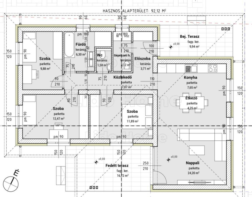 15 cm homlokzati, valamint 40 cm födémszigetelés