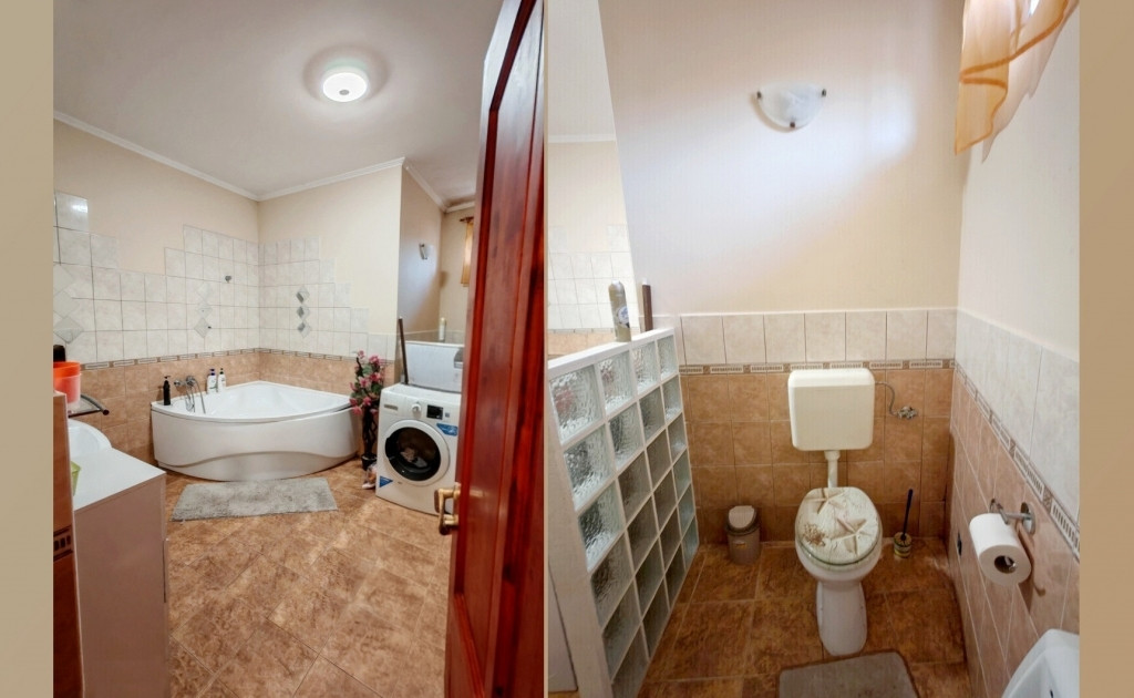 - a fürdőszoba és wc egy helyiségben található, de praktikus kialakításának köszönhetően, mégis elszeparálva