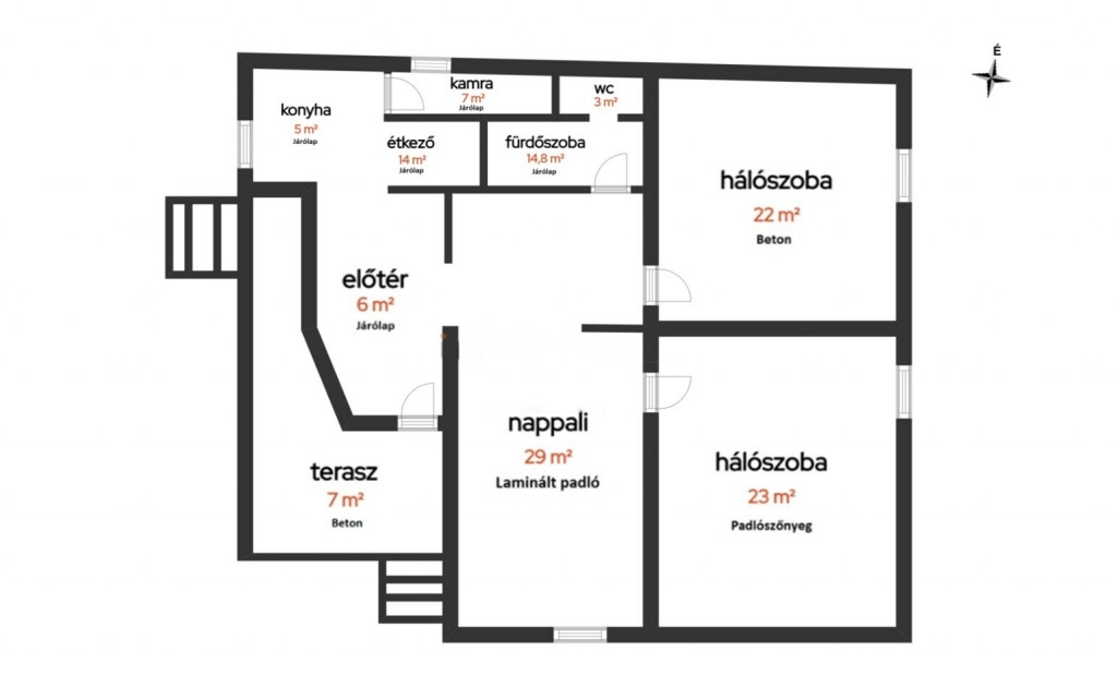 - praktikus belső elrendezésű ház, tágas nappalival, két hálószobával