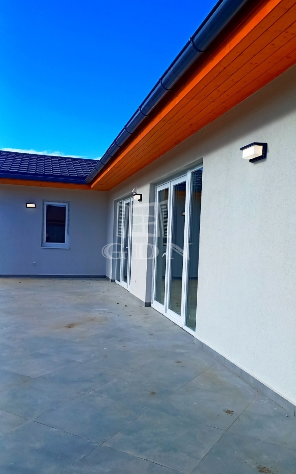 A ház három különálló szobával és egy 60 négyzetméteres nappali-étkező-konyhával rendelkezik. Emellett egy 24 négyzetméteres garázs, és egy impozáns 27 négyzetméteres terasz is a házhoz tartozik.