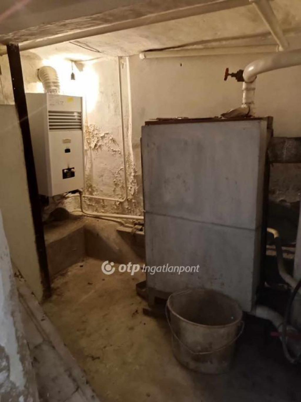 Gáz kazánnal és vegyes tüzelésű kazánnal, a pince helységben található, némi modernizációra szorul. cserépkályha fűtéssel.