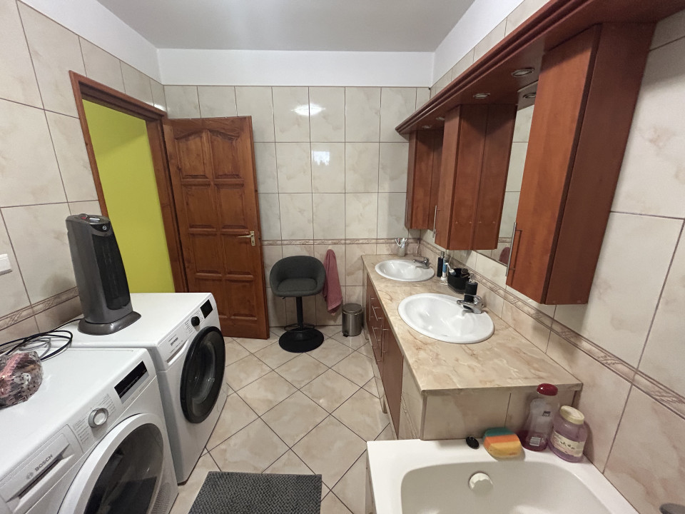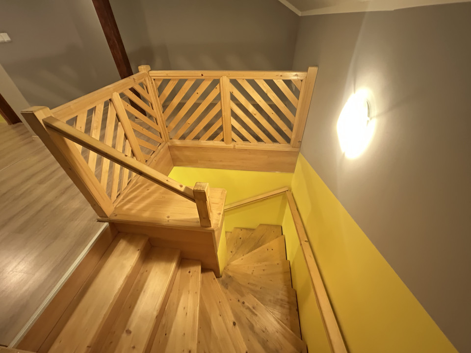 b,-1. - Az eladó ingatlan helyiségei az emeleten az udvar/kert felőli részen: lépcső, galéria, 3 külön bejáratú hálószoba,nagy méretű erkély( ide két szobából is lehetséges a kijutás), WC külön helyiségben, fürdőszoba, mely még nincs szaniterrel felszerelve( hideg és meleg víz, szennyvíz kiállások készen, 2x mosdó, fürdőkád, zuhany, mosógép)