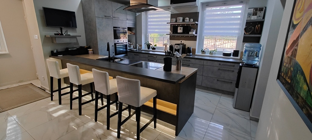 -étkező-konyha (igényes egyedi kialakítású bútorral)