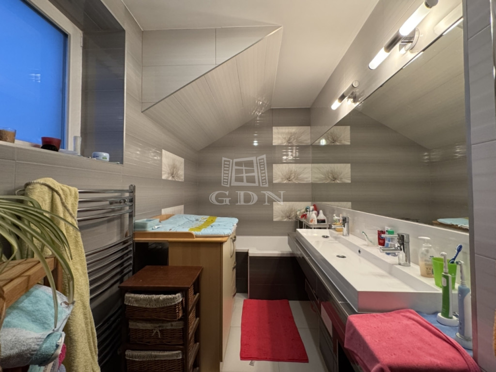 Az emeleten 3 hálószoba, gardrób, fürdőszoba található.