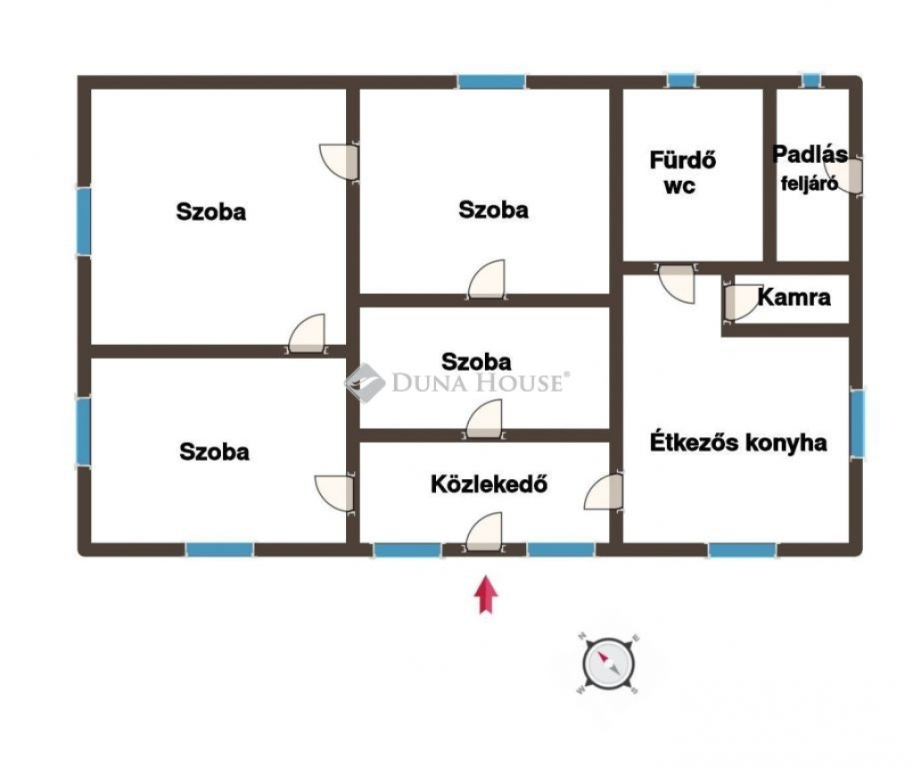 Az ingatlan praktikus elosztásának és tágas tereinek köszönhetően kényelmes életteret biztosít. A sok ablaknak hála a ház világos, barátságos hangulatú.