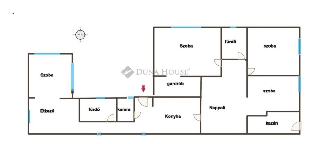 A tágas földszinten nappali és 6 különböző méretű szoba, két fürdőszoba, konyha, kamra, előszoba és gardrób kapott helyet, minden adott ahhoz, hogy akár egy nagy család is kényelmesen elférjen.