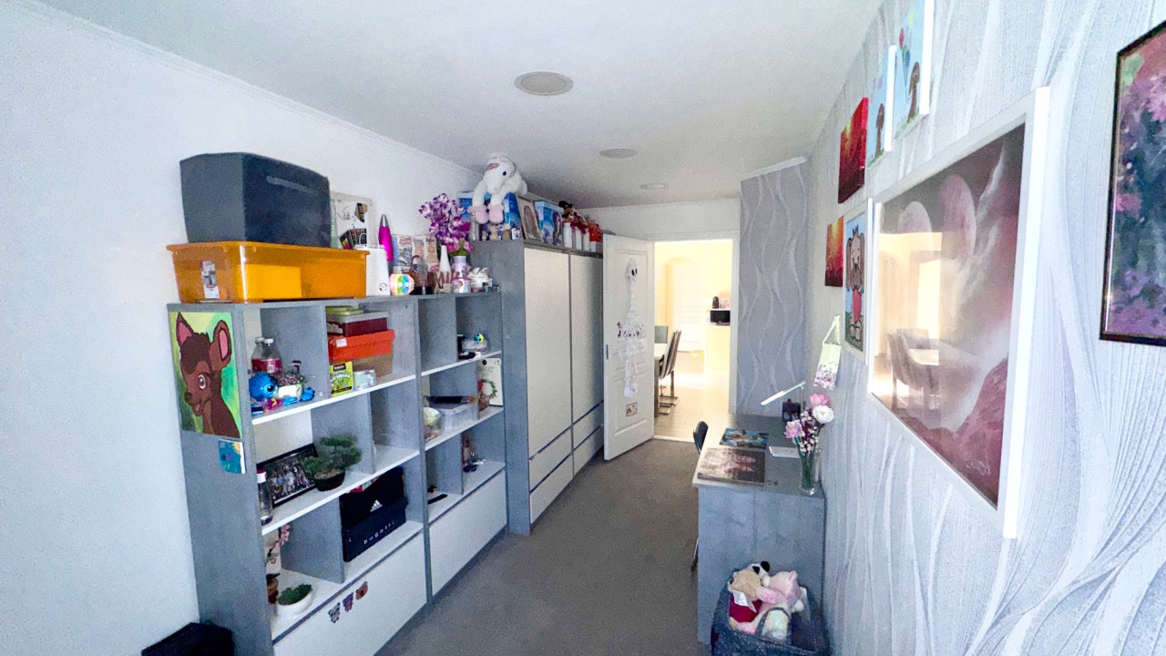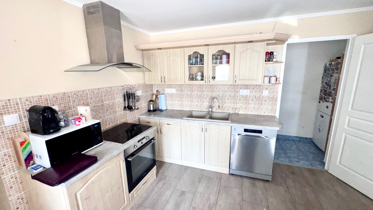 A szobák külön nyílnak, burkolatuk laminált parketta valamint szőnyegpadló a konyhabútor egyedileg gyártott magas minőségű, beépített mosogatógéppel és elektromos sütővel felszerelt.